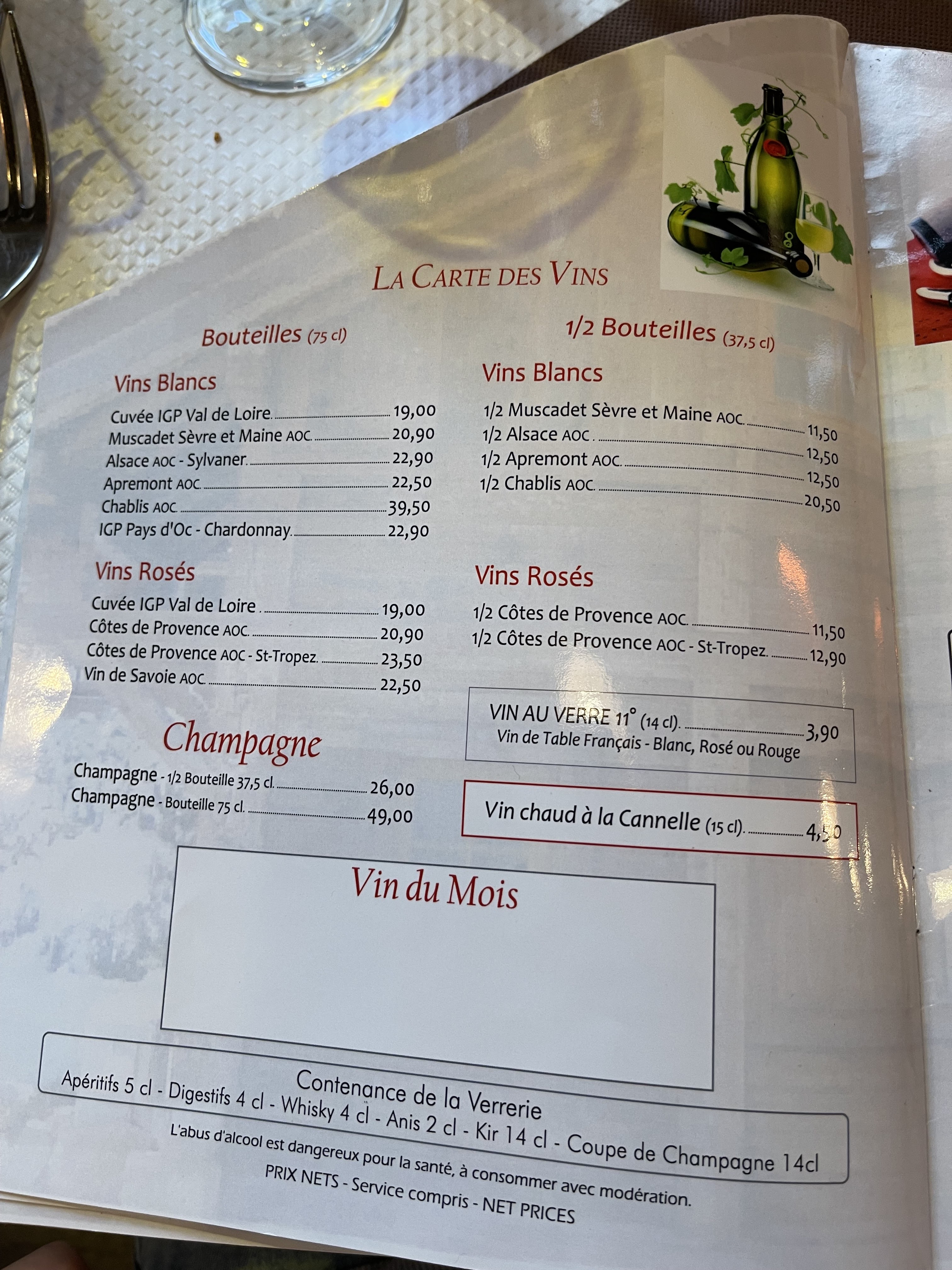 Expérience décevante: notre serveur nonchalant (traîne les pieds, siffle et fait cliqueter des couverts dans sa main), entrée saumon médiocre en qualité noyée en vinaigrette bon marché, lapin à la moutarde fade et à la texture repoussante (voir la photo), patates à l’eau mal épluchée. Il y a que les desserts fruits frais et fromage qui s’en sortent. 19€90 pour ça. A éviter absolument