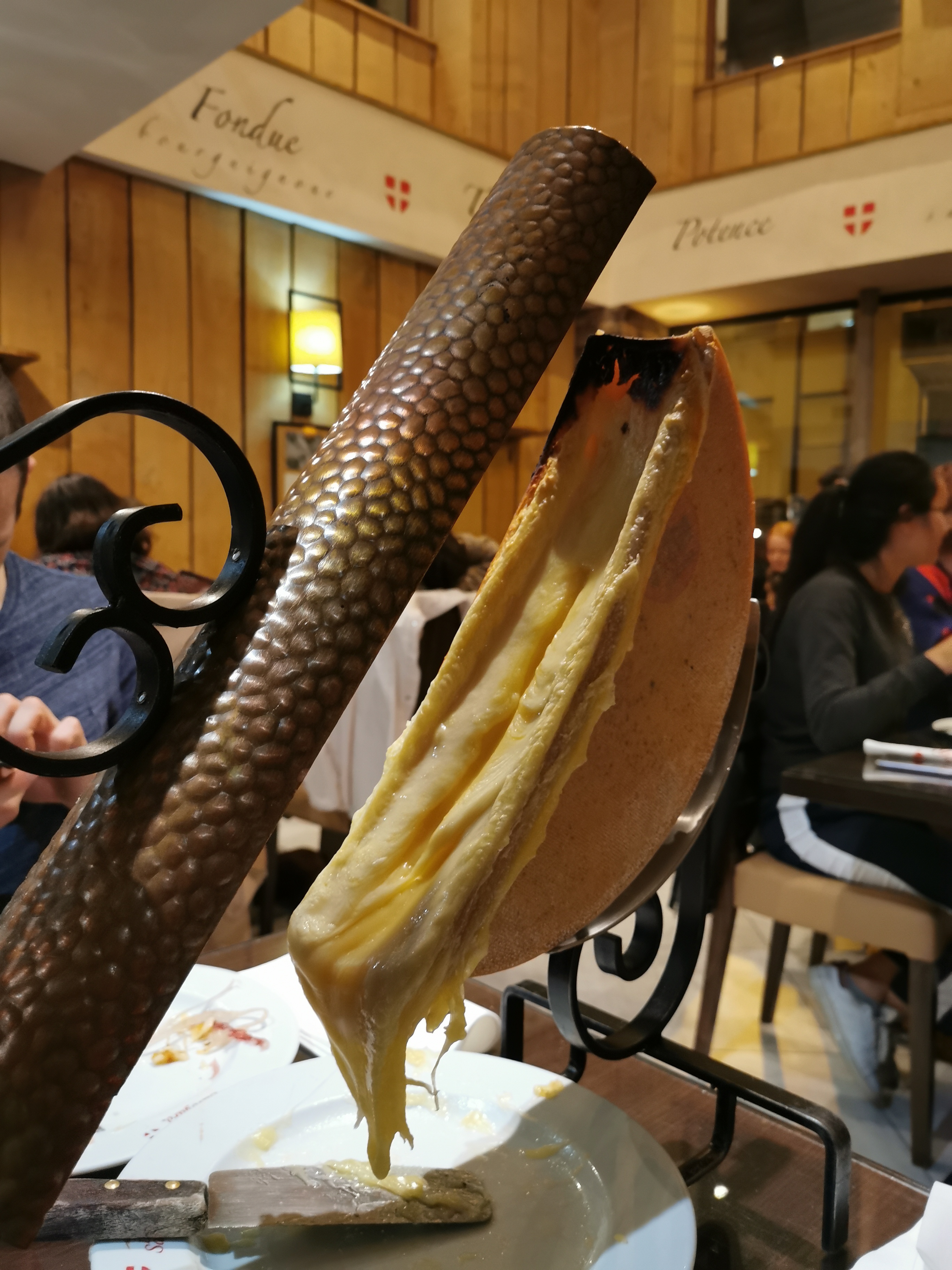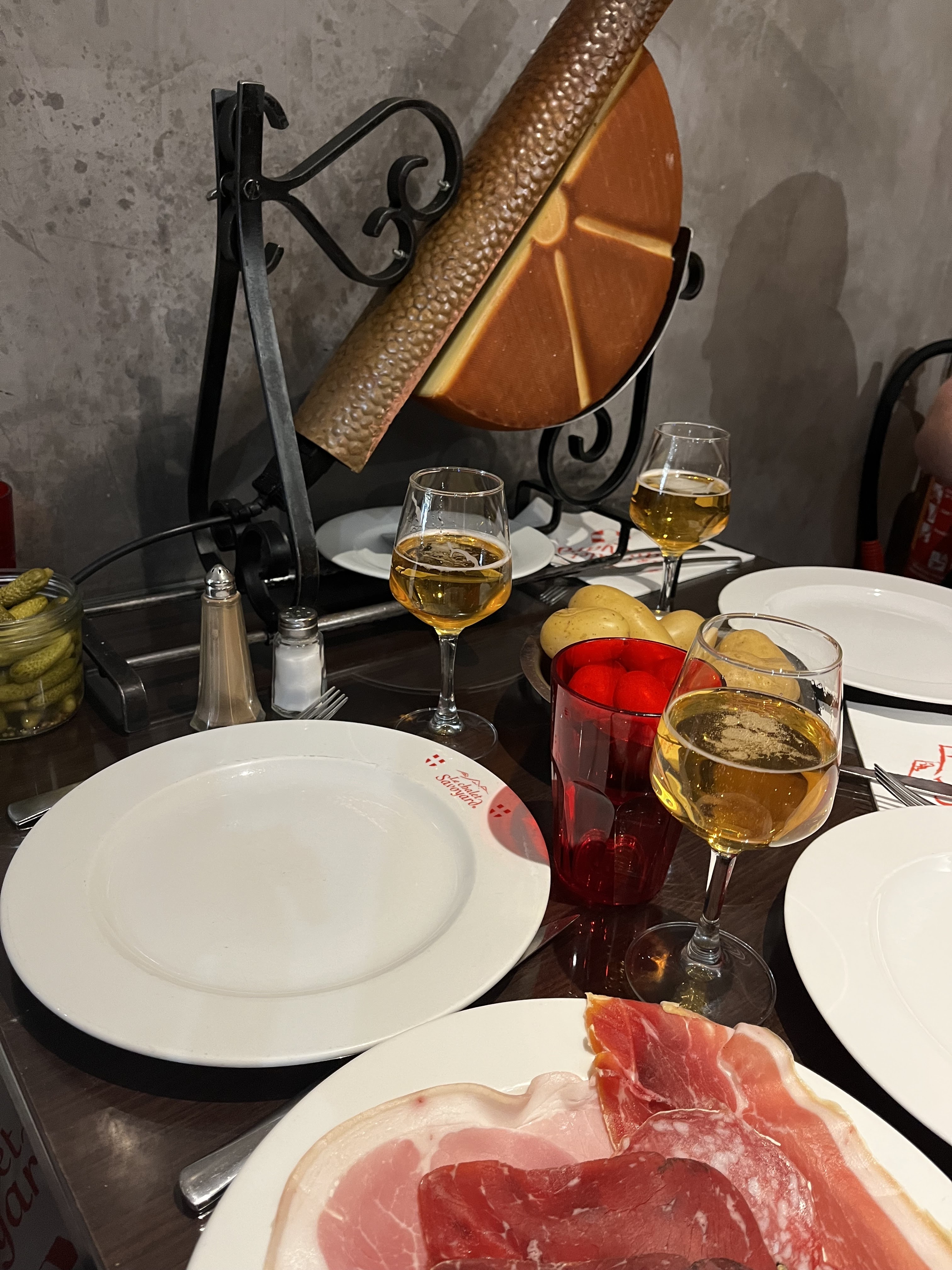 Sûrement l'un des plus grands restaurants ou manger de la raclette (ou de la fondue) à Paris ! On a de vrais tables et de vrais chaises et on est pas collé aux autres tables ce qui est très sympa ! Les services sont de 2h30 ce qui est largement suffisant et la raclette est très bonne ! On était 4 à en prendre donc on a pu en tester deux sur les 4 au même prix (28 euros par personne). Il y a morbier, nature, ail des ours et bleu 😍 on retournera tester les deux autres avec plaisir !