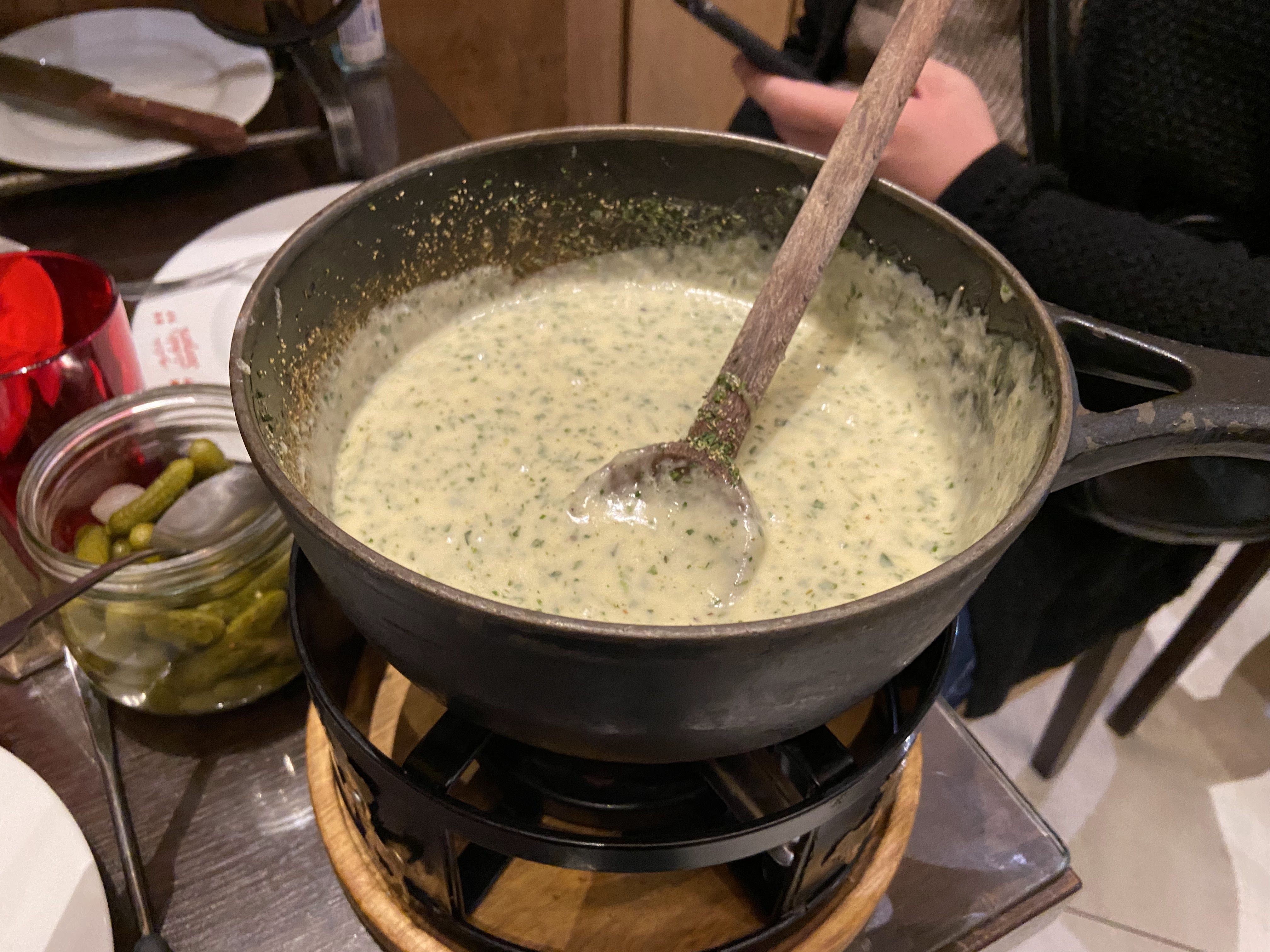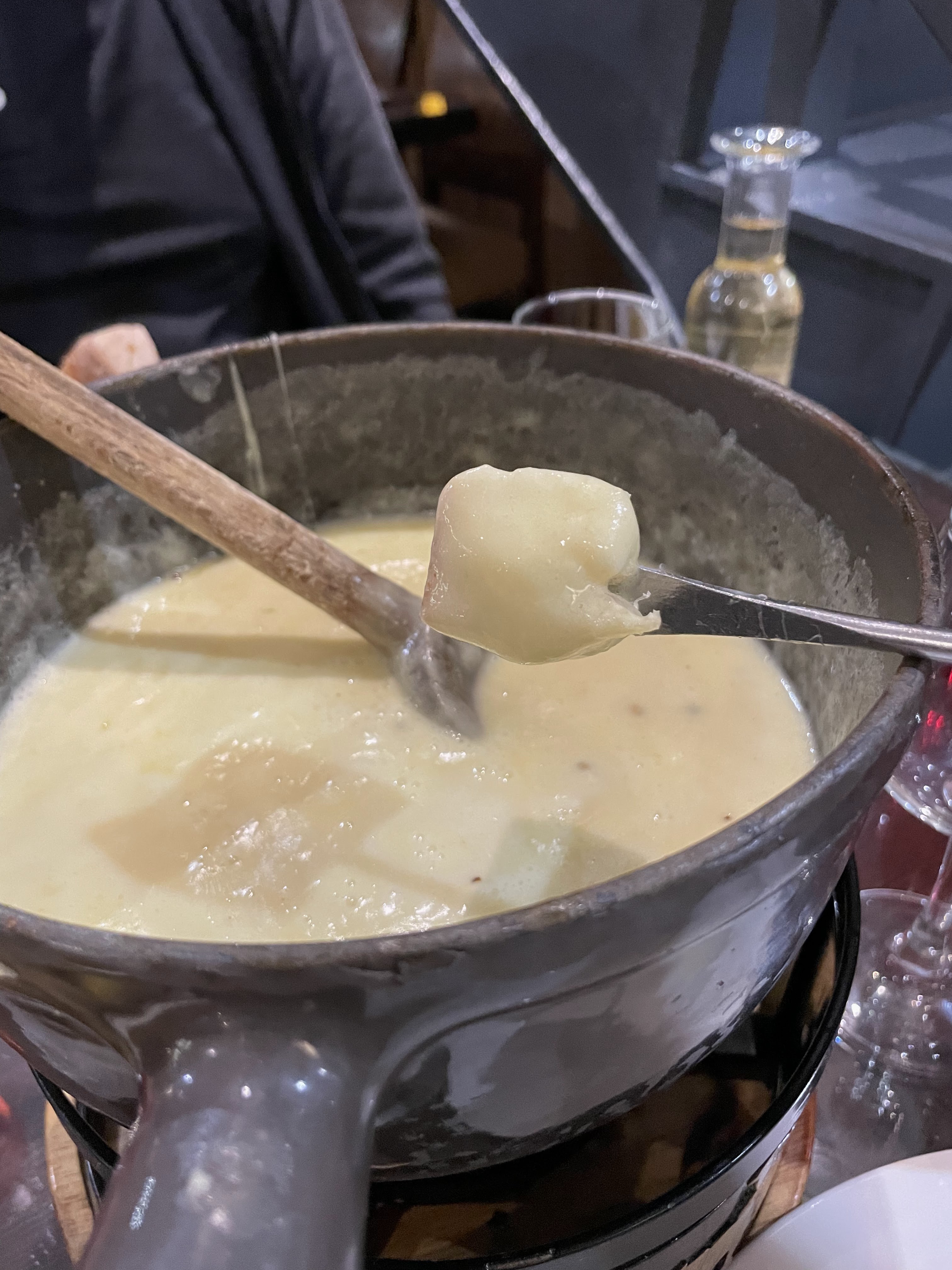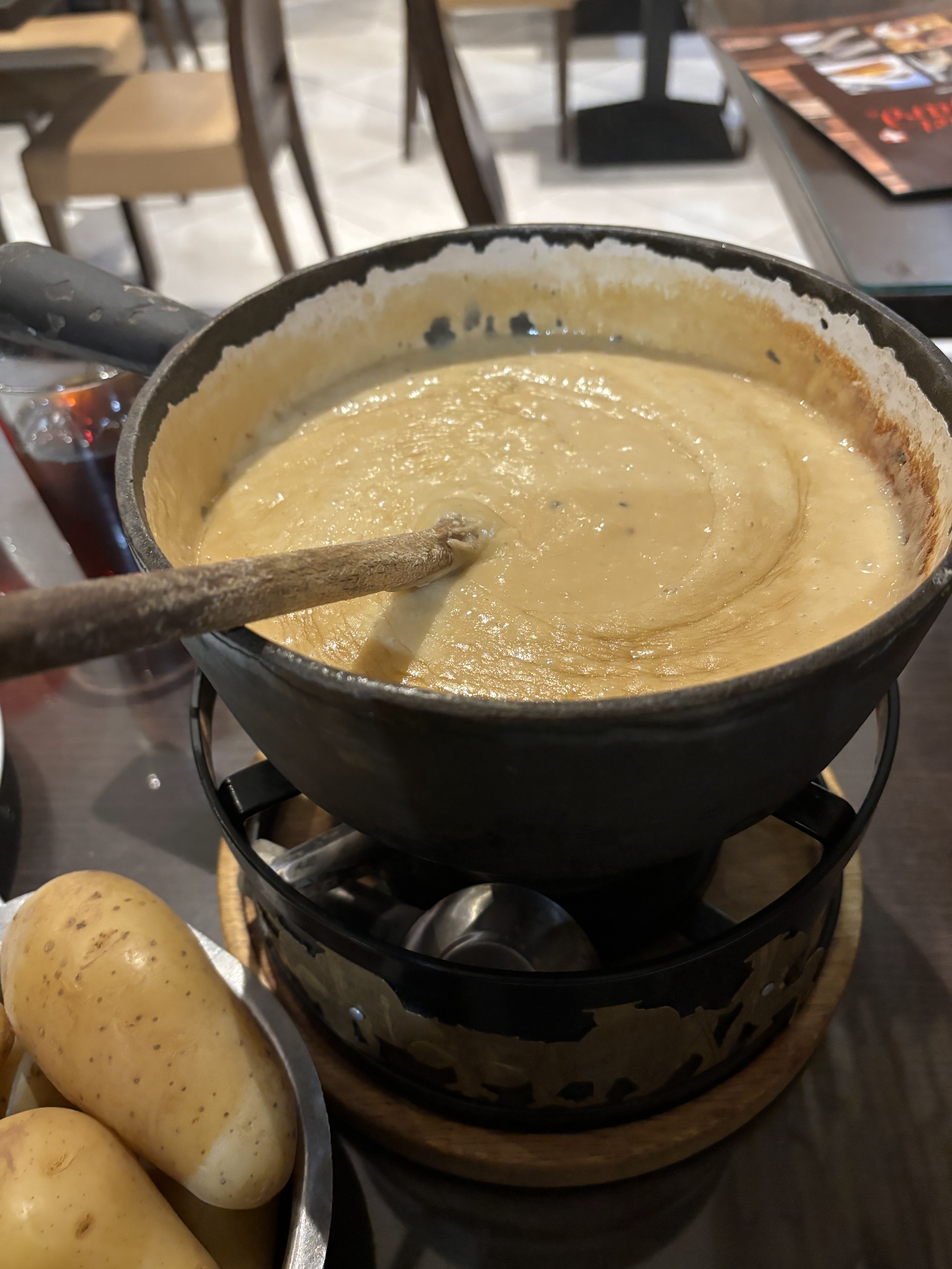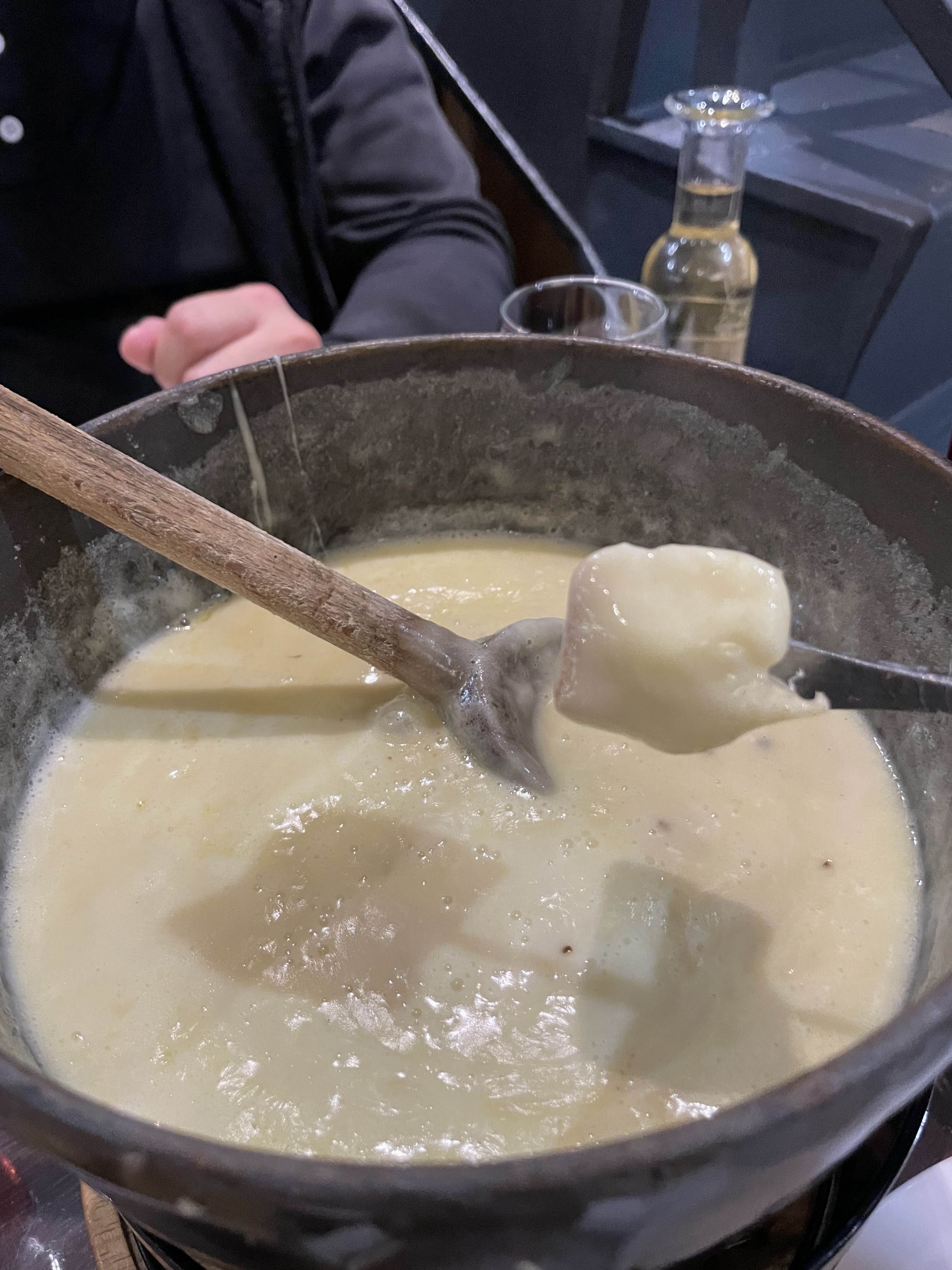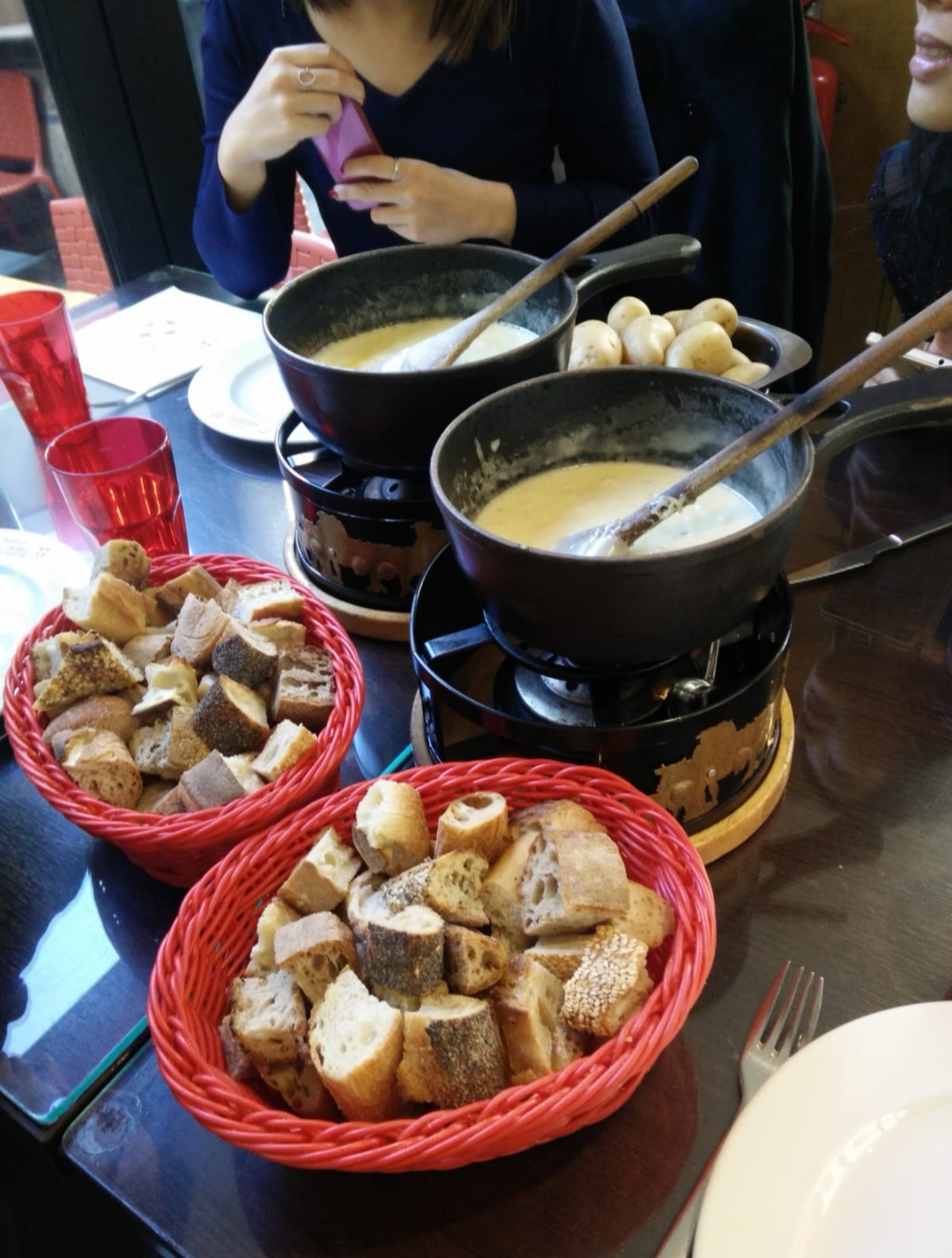 L’endroit est charmant et grand mais c’est souvent rempli (il faut faire la queue ou réserver le samedi soir par exemple) et bruyant. Nous étions 6 et les plats n’ont pas été servis en même temps. Les patates de notre fondue sont arrivées 30min après la fondue elle-même et idem pour les plats de nos amis. De plus, le « croûtons » ne sont que de simples morceaux de pain non grillés. C’est quand même cher pour ce que c’est.