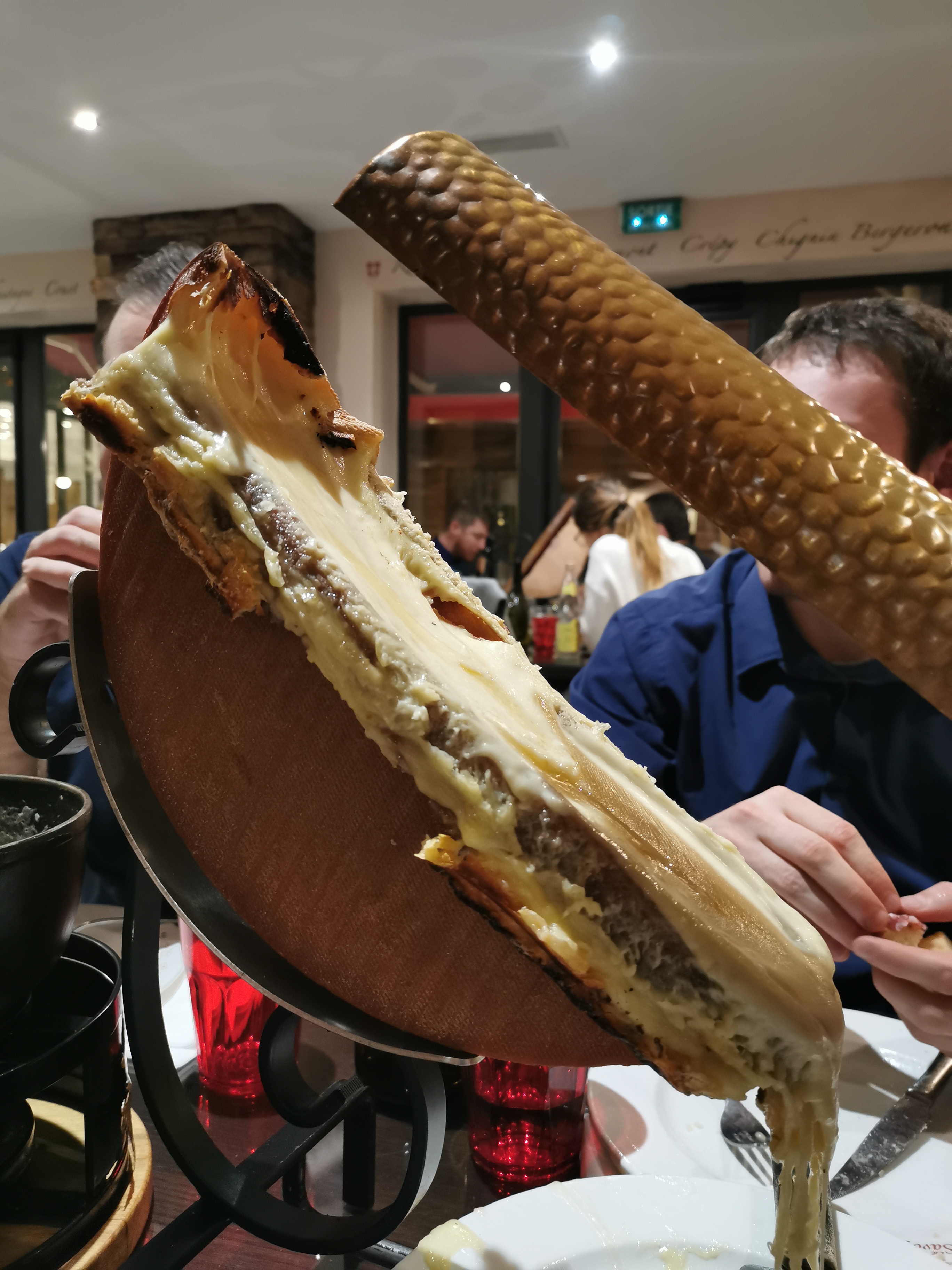 Une très belle expérience dans ce restaurant qui propose des spécialités entièrement savoyardes : raclette, fondue, etc. Il est fortement recommandé de téléphoner le matin pour avoir une place. La raclette est succulente, les portions sont très généreuses et vous en aurez plein le ventre à la fin du repas ! Cependant, ce qui est dommage est le service un peu lent. Les serveurs ne viennent pas directement à votre table et vous devez les appeler pour qu'ils puissent s'occuper de vous. L'attente pour l'arrivée de la raclette est un peu longue lorsque vous voyez les autres tables déjà prêtes. Les prix sont très abordables donc je recommande fortement !