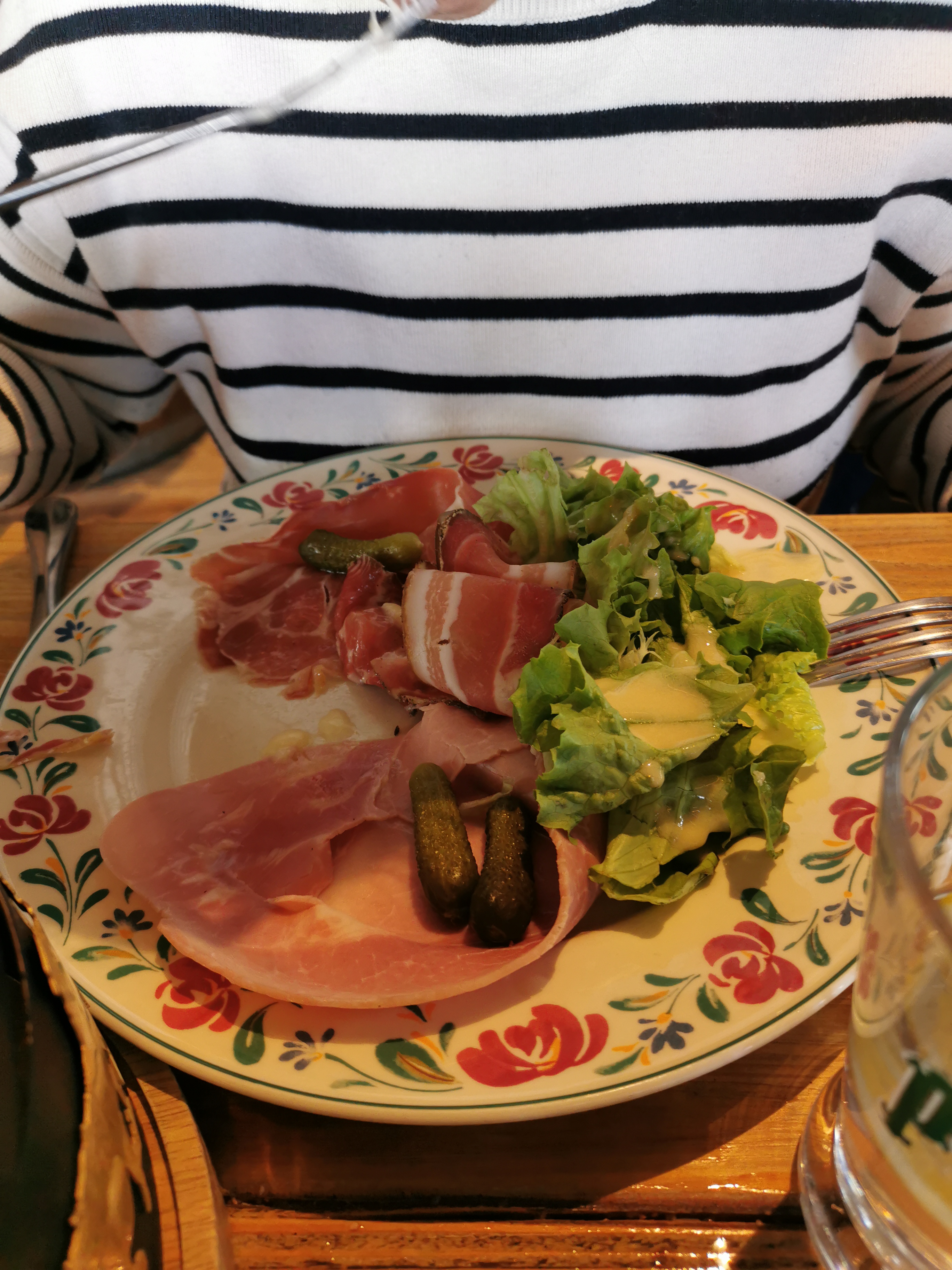 C'est bon. Personnel compétent. Mais le prix ? 22€ assiette savoyarde : 1 tranche de jambon, 1de jambon blanc et 1 de rosette. 1 feuille de salade. Un petit ramequin de fromages rempli à moitié et patates à volonté nous dit on (humm c'est trop généreux) Heureusement on s'est blindé de pain. Non sincèrement c'est une blague? La planche est énor-mément grande mais ne vous y trompez pas, pas grand chose dessus ! Il n'y aura pas de seconde fois