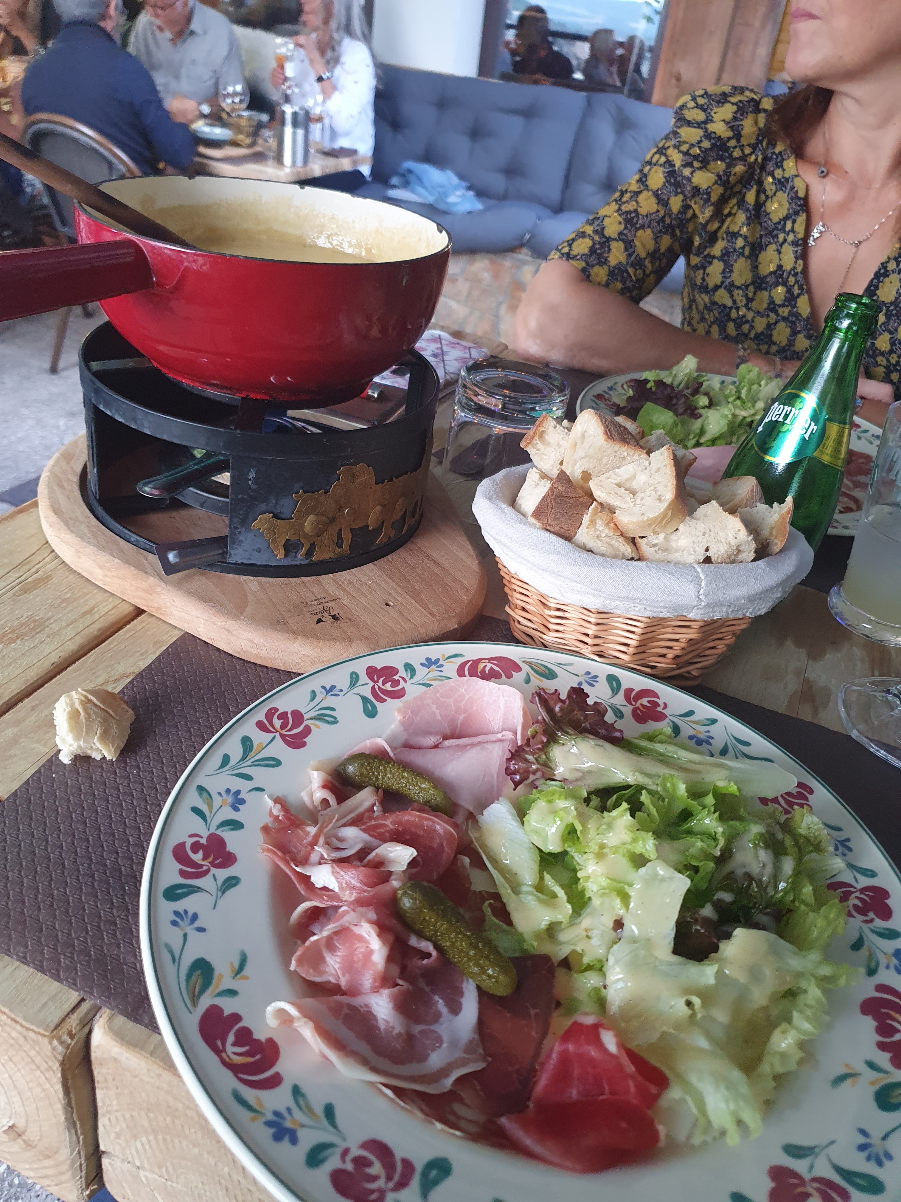 Très sympa un moment qui peut même nous faire penser que nous sommes à la montagne de manquer que la neige. Les fondus et le repas servis était de bonne qualité, un seul doute sur la charcuterie, elles semblent venir de l'industrie. Je recommande pour un moment de dépaysement.