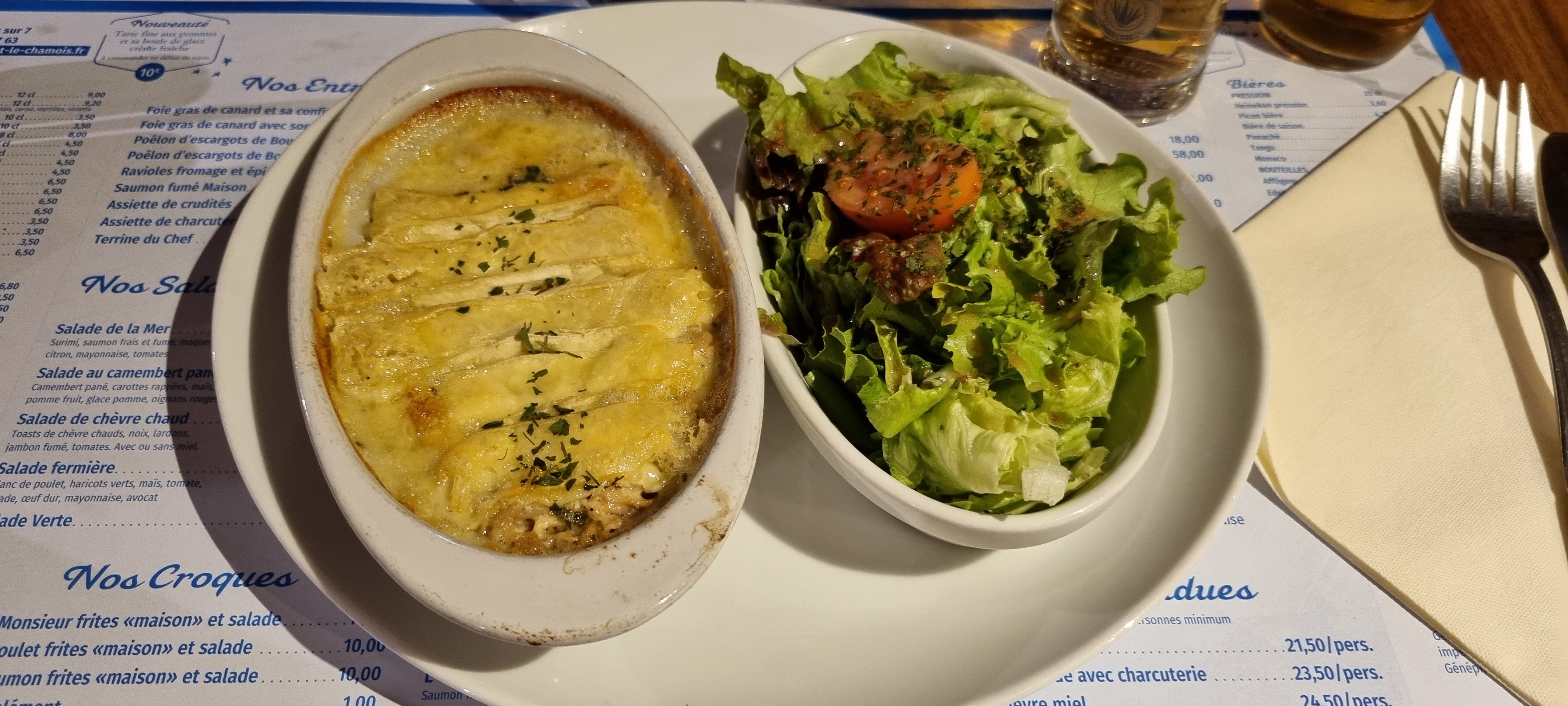 Ma famille et moi sommes allés manger au Chamois le 23/12 au soir. Nous y avons passé un très bon moment. La nourriture était excellente et la serveuse était très gentille et serviable.