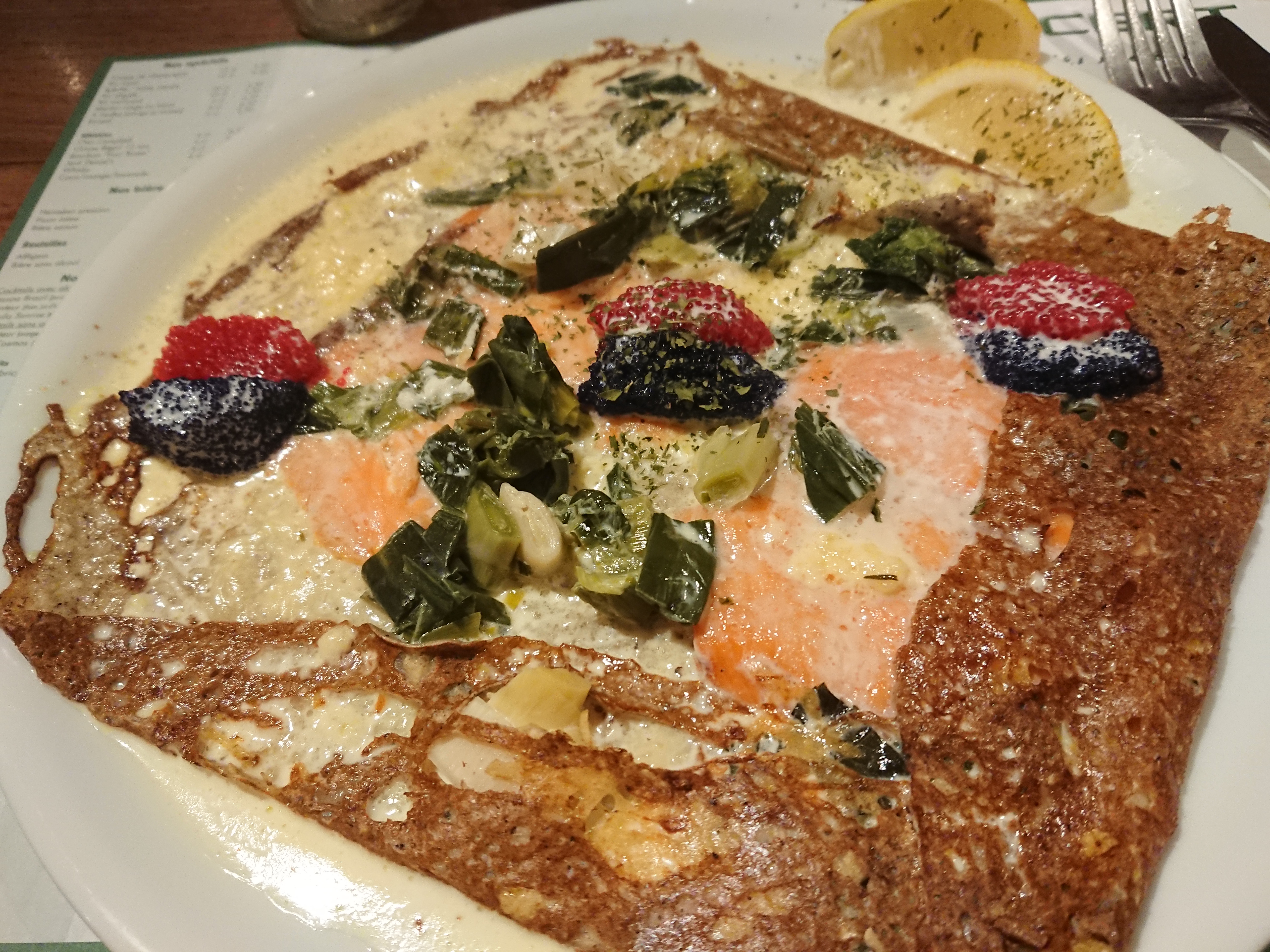 2 étoiles pour la cuisine, c'était vraiment très bon. Par contre: - cher pour le peu de quantité, certains avaient encore faim en sortant - service très long, presque une heure, et une autre table à côté à été servis qu'après 2 heures ! - une cliente a reçu la mauvaise crêpe, l'a ramené à l'accueil, et cette crèpe, après avoir été traînée de main en main à été servie par la suite .. - le croque monsieur est servi avec salade. C'est ce qui est noté sur la carte. Il a été servi avec une demi feuille de salade, la blague !