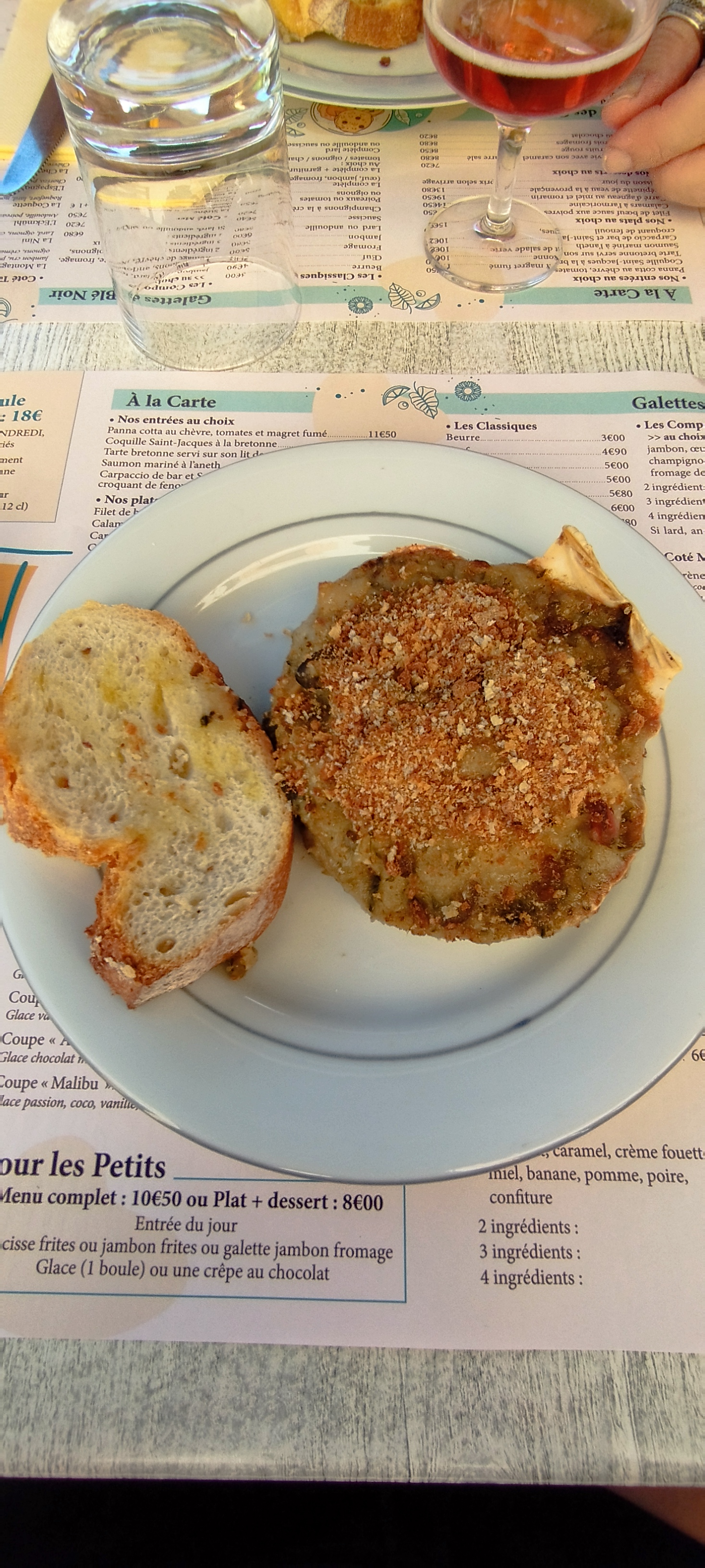 Mouais, galettes convenables, la galette Sirène, les noix de st Jacques un peu sur-cuites, la sauce curry avec les champignons un peu fade, en dessert une crêpe avec des pommes rissolées posées dans l'assiette et la crêpe déposée dessus, il me semble que l'inverse aurait été mieux, il faut que ça dépote !!!! et surtout le café servi avant le dessert! Le service fait par un job d'été sans expérience est excusable, par contre aucune attention de la part du patron au moment de payer, si ce n'est de présenter la note et d'annoncer le tarif sans nous demander si tout c'était bien passé, sans aucun regard. Ce n'est pas grave nous sommes des touristes qui ne reviendrons certainement pas, donc pas d'effort à fournir avec nous.