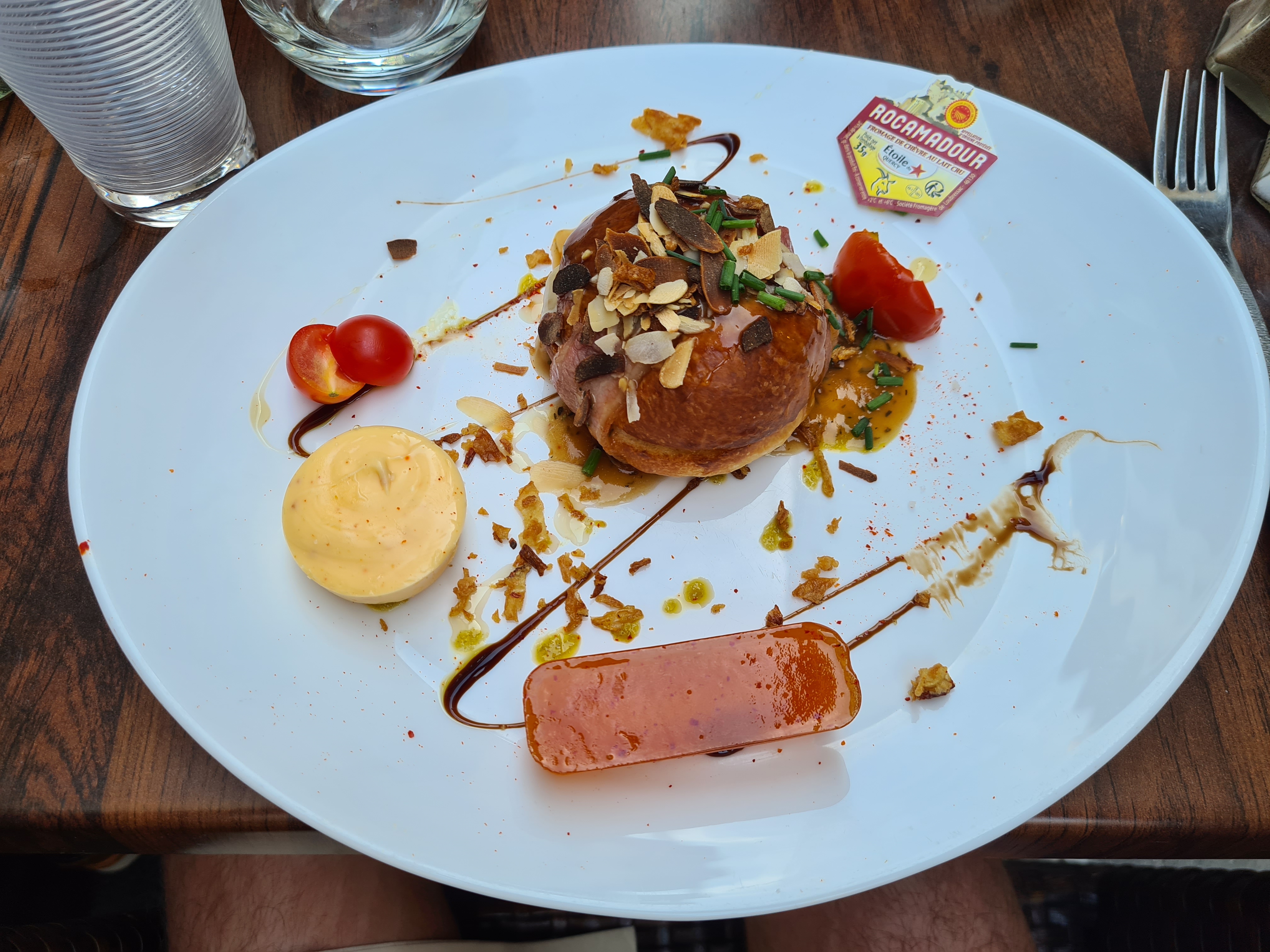Nous avons mangé un midi : brochette d’aloyau et sa sauce tyriaki accompagné de son riz. En dessert un tiramisu à l’abricot et un burger de rocamadour. Oui c’est du fromage qui est inclus dans une brioche entourée de lard. Vous voulez que je vous dis : c’est tout simplement divin ! Un chef sympa et une serveuse souriante et efficace (c’est la cerise sur le gâteau). Ne changer rien, nous reviendrons. Adresse que je recommande.