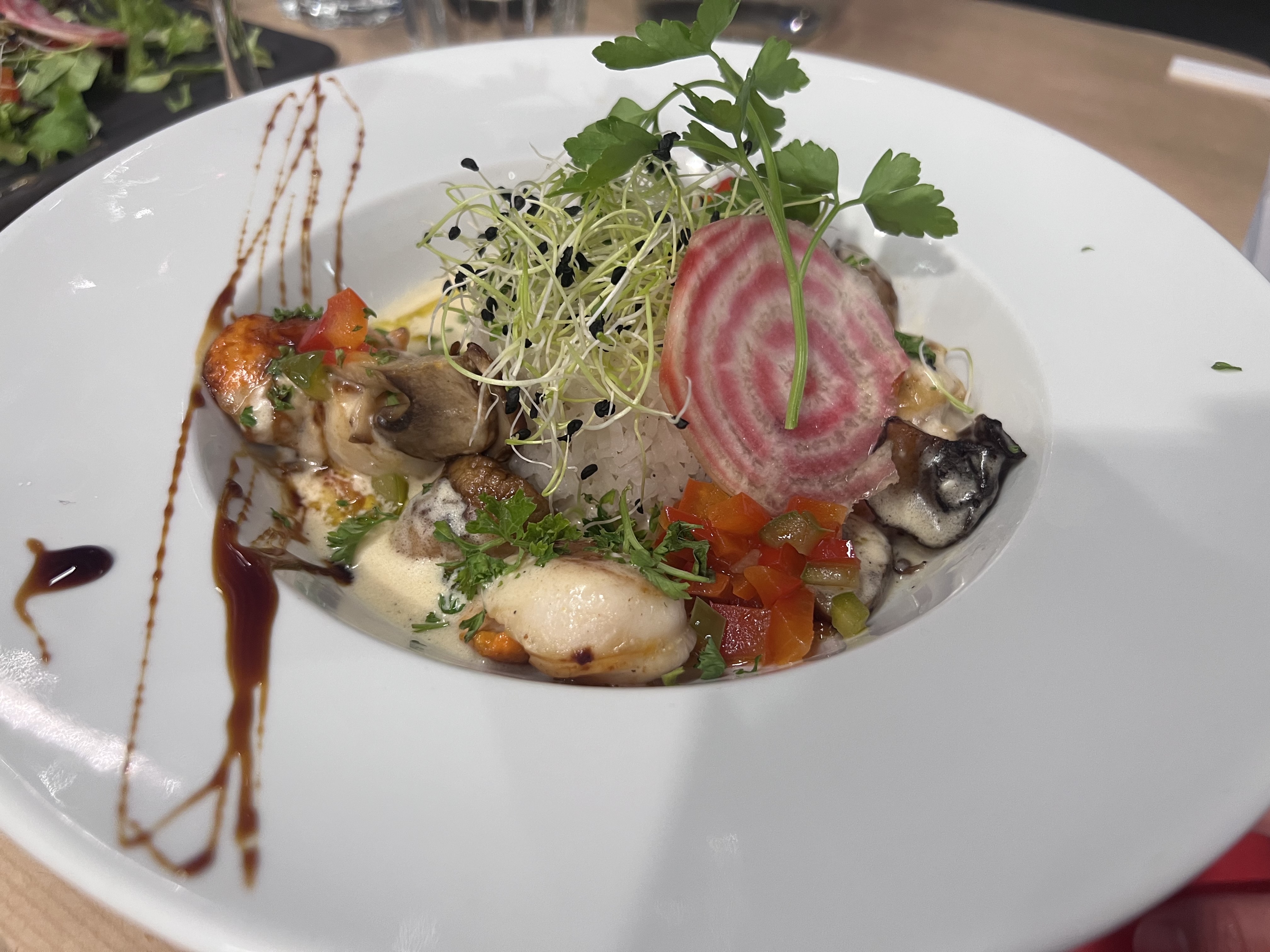 Je commence tout de même en mentionant que les serveurs sont agréables et gentils, rien à dire la dessus. Les moules qu’on pris mes amis étaient bonnes et les huîtres de même. En revanche pour ma part, c’était une mauvaise expérience…. Le vin de merlot est inbuvable et je n’ai jamais pas bu mon verre de vin… il a une consistence de jus de raisin acide. Les st jaques sont de bonne qualité mais le plat est très moyen: excessivement lourd en raison de la crème trop épaisse sur le riz créer un pâté qui fait que les ingrédients se marient mal! Portion généreuse mais le plat ne se rend absolument pas justice. Le dessert était mauvais. La tarte tatin est fade et sans goût. Quand je l’ai mentionné aux serveurs, ils m’ont envoyé le supérieur qui n’a fait aucun geste… absolument aucun. Pour un menu à 50€. Même pas un café.