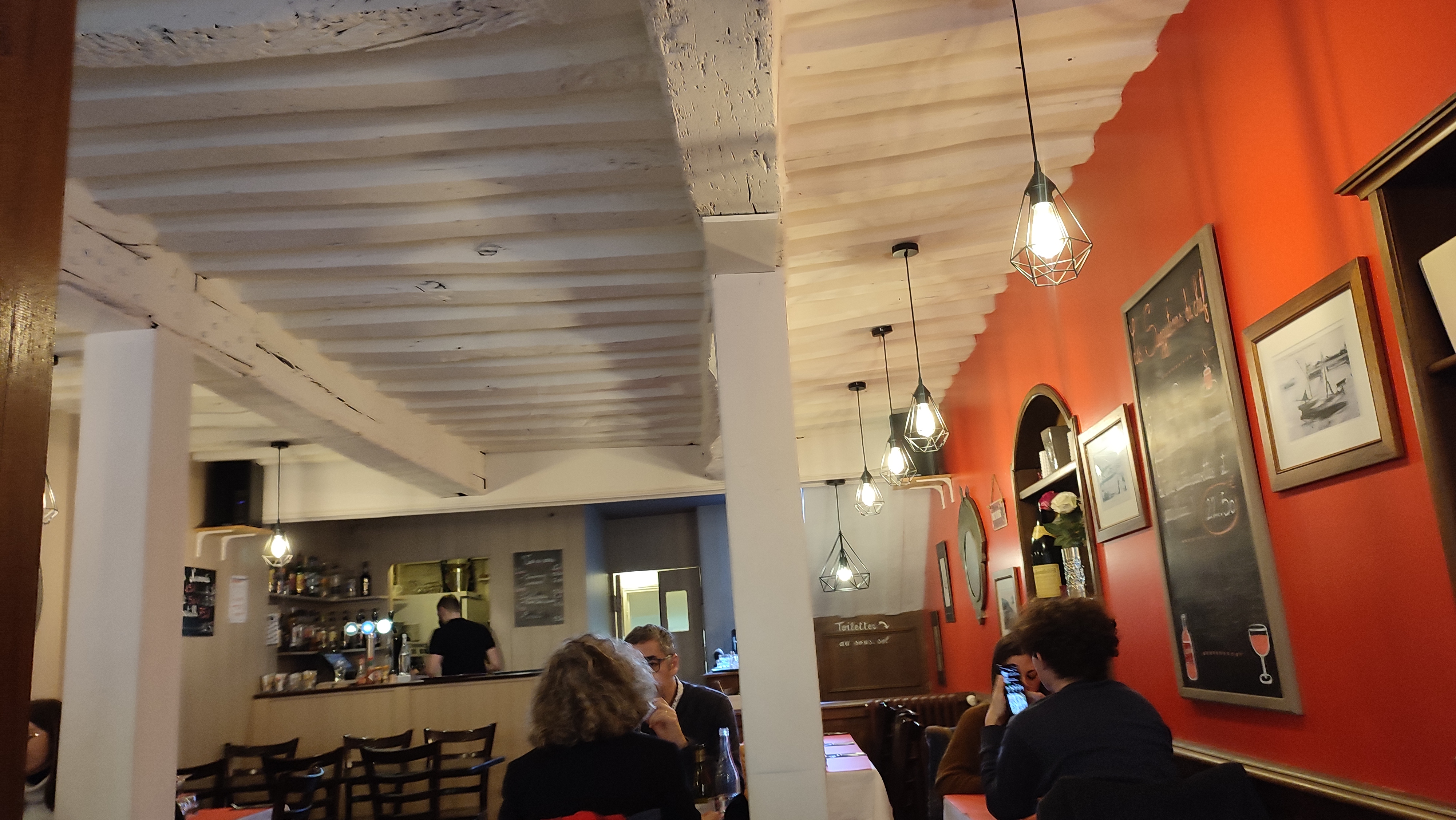 Ambiance conviviale, on est bien reçu. Cuisine sans grande surprise, mais l’établissement ne joue pas la carte gastronomique et s’en tire très bien avec une carte qui laisse un bon choix, des assiettes généreuses et de bonne qualité. Bon souvenir du camembert cuit panné, et de la pièce du boucher, très tendre. Quelques bonnes bouteilles de vin disponibles si on est prêt à y mettre le prix, notamment un Pauillac Hauts Bages tout à fait savoureux.