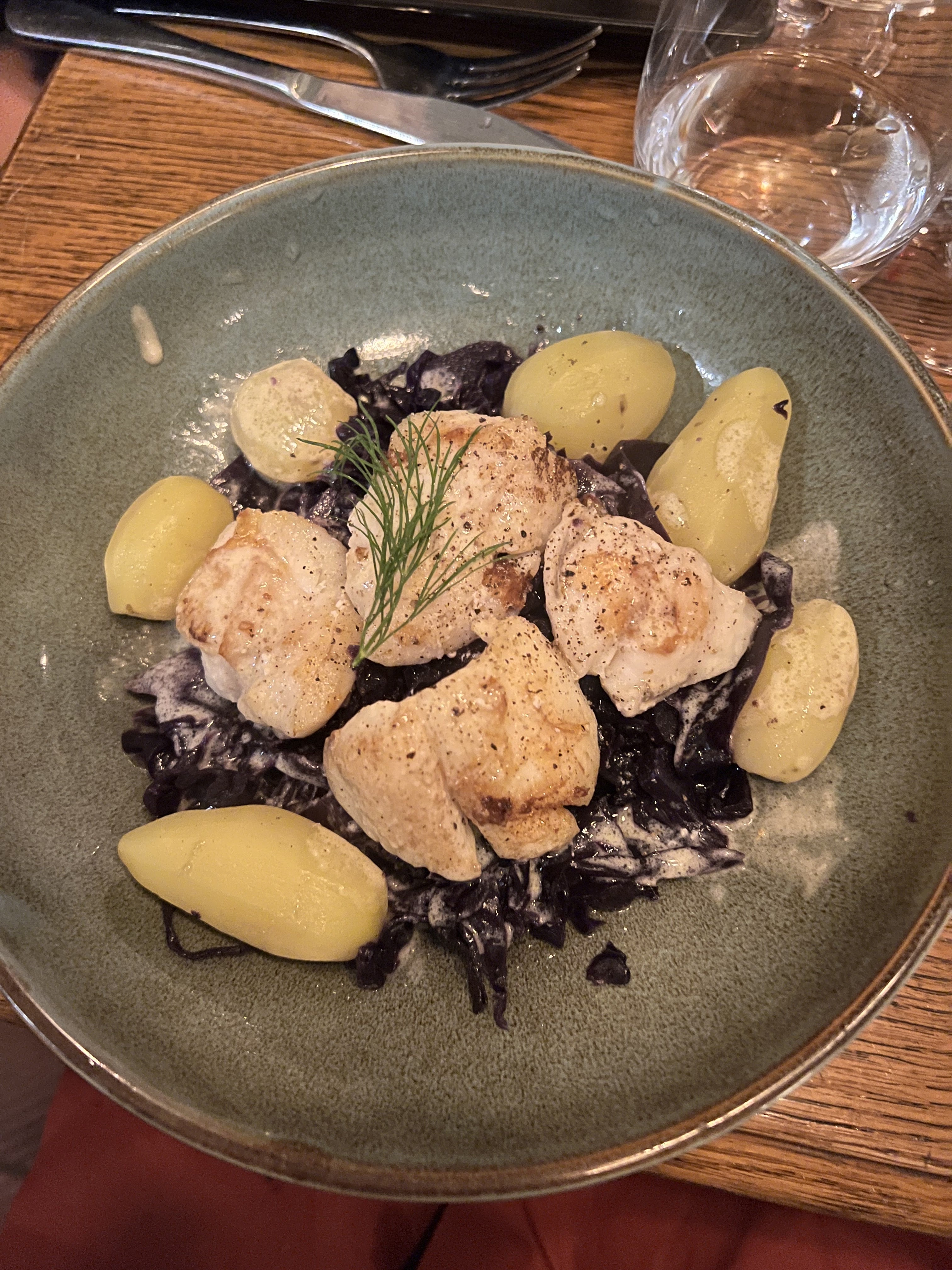 Délicieux dîner apprécié ici. Si vous voulez des plats de saison bien cuisinés, cet endroit est fait pour vous. Nous avons apprécié les plats principaux de lapin et de côtes de porc, ainsi que les desserts aux baies de saison. Arrosé de cocktails rafraîchissants et d’une bouteille de fumée de pouilly croustillante. Je recommande vivement de manger ici pour s'éloigner des menus touristiques standards !