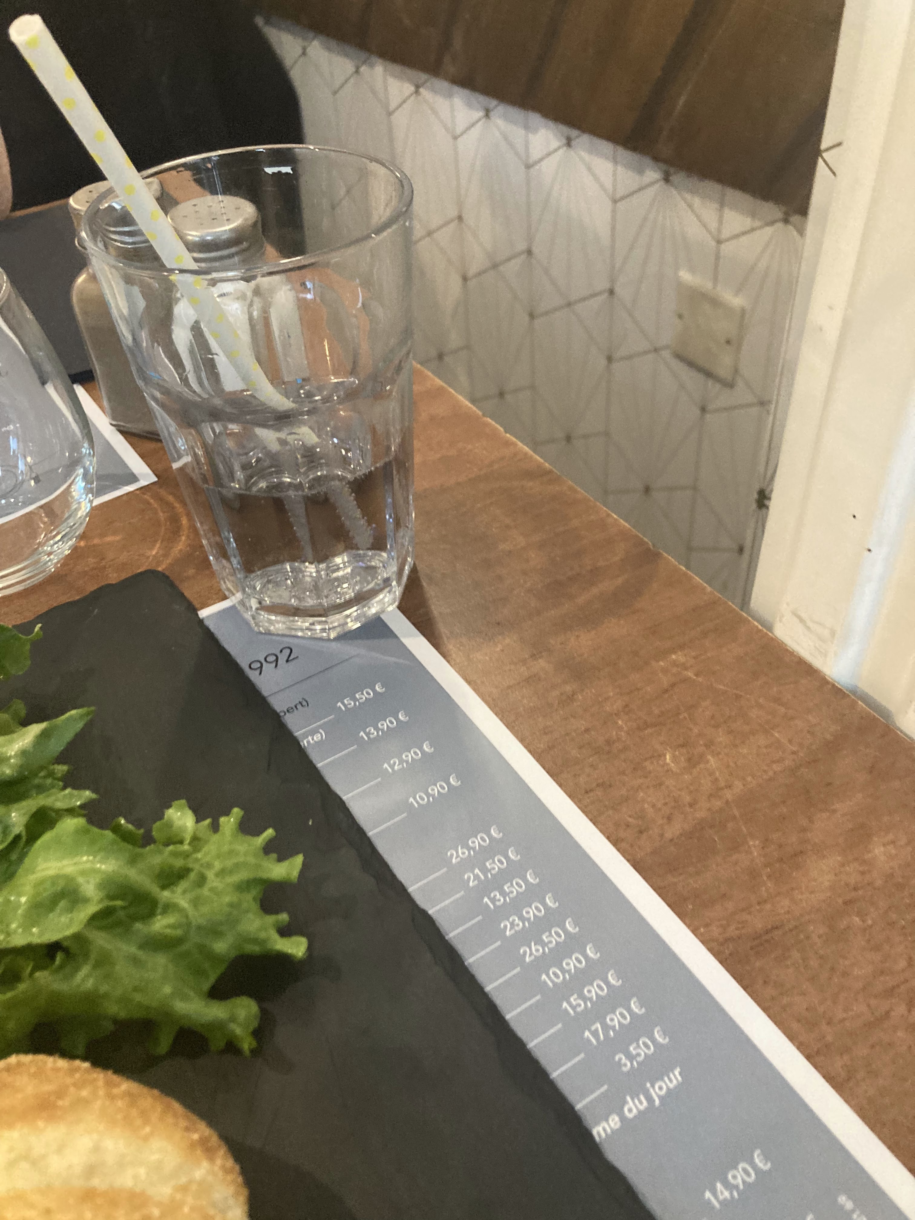 1 heure pour voir arriver le 1er plat .....mais c'est normal, 21h c'est l'heure de pointe en Creuse ( Aubusson, capitale de la tapisserie de basse-lisse ça se mérite). Bon on ne peut pas être critique tout le temps. On est quand même dans un restaurant qui ré-invente l'orthographe ! Ici le camembert s'écrit avec un n !! Bref ! ....,