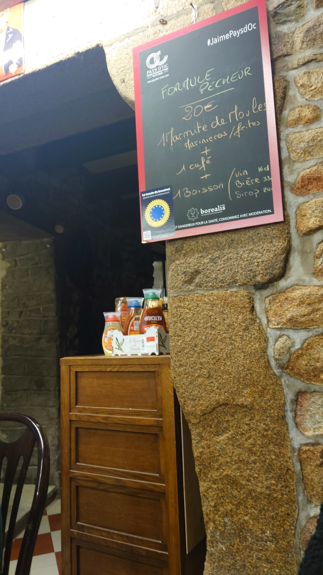 Petit restaurant au cœur de la rue commerçante du Mont Saint Michel. Très peu de place à l'intérieur et accueil un peu frais mais qui s'est arrangé au cours du repas. Carte des menus très simple avec des moules, des saucisses et quelques galettes. Les prix ne sont pas trop élevés, un peu comme la cuisine. Le service est rapide