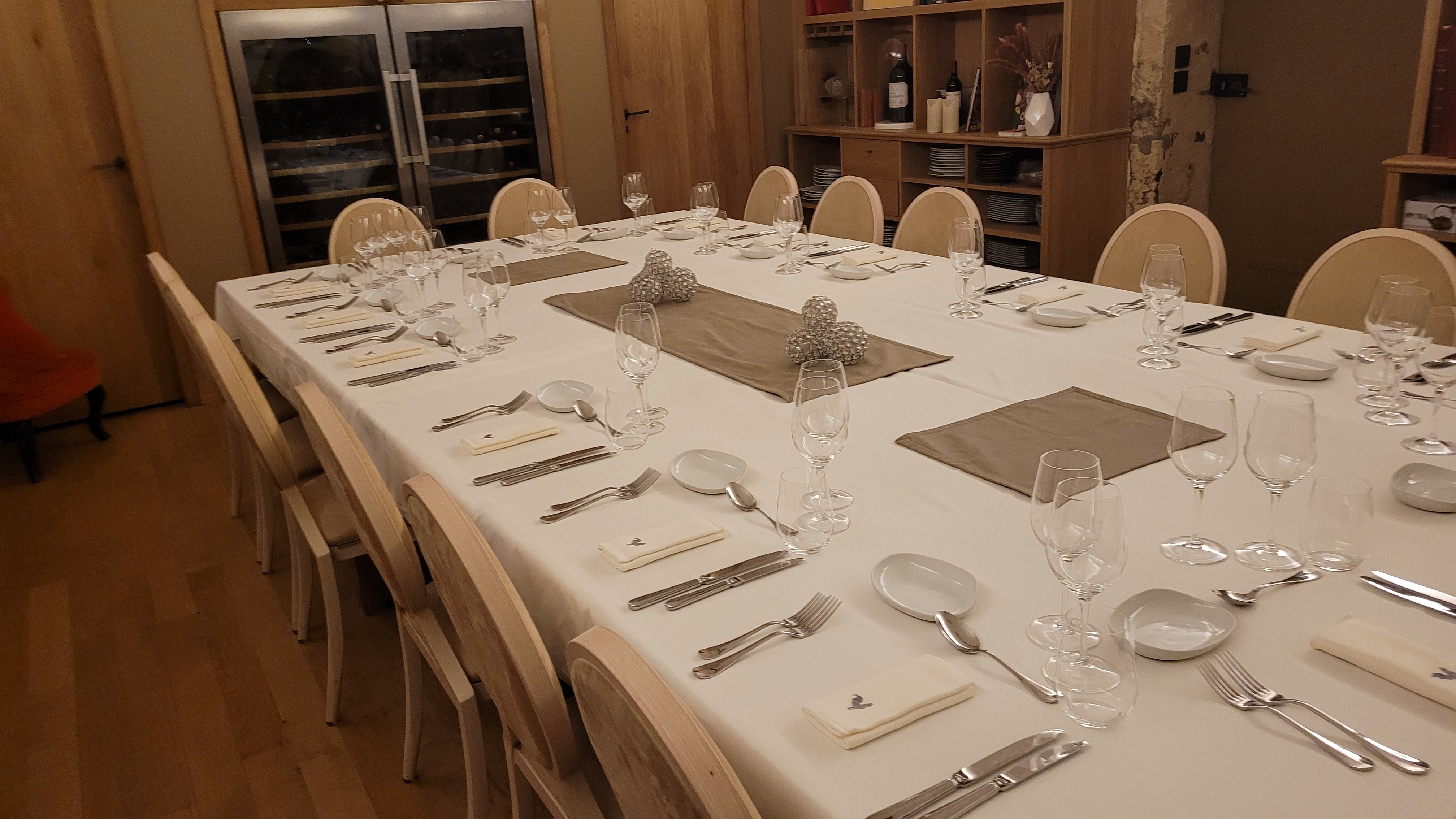 Accord mets-vin : ne pas servir trop tôt le vin par rapport à l’arrivée des plats Éviter de laisser apparent dans un coin l’aspirateur et de brosser les fauteuils pendant le service Personnel très attentionné, cuisine raffinée et dressage très élégant. Merci beaucoup pour la visite de la cave