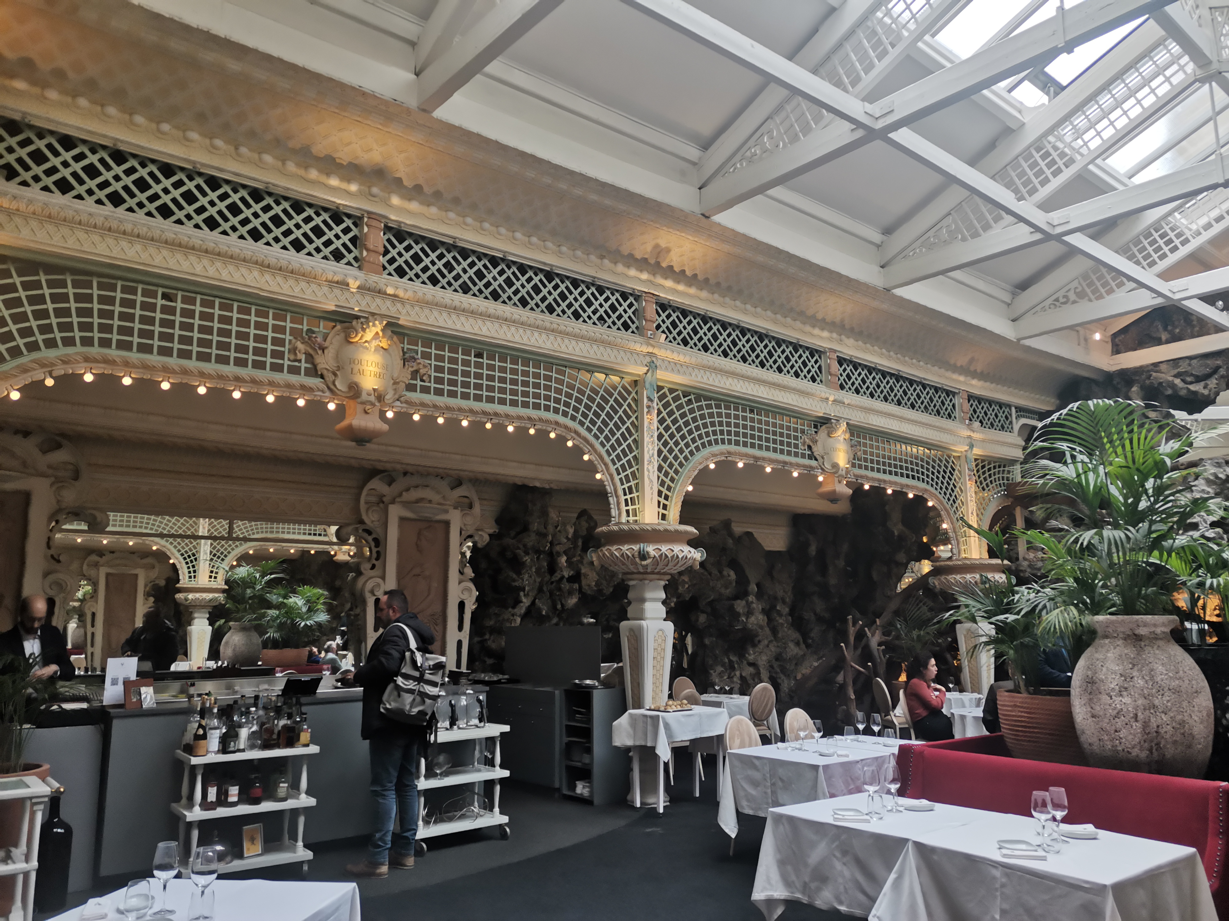 Restaurant atypique c’est clair. Il faudrait mettre un peu plus de verdure ici et la pour éviter cette ambiance Hall de Gare a moitié vide. Tous les plats sont préparé à l’avance c’est clair car ils arrivent sur la table extrêmement vite. Ceci dit, c’est frais mais sans recherche particulière on va dire. On peut faire de ce lieu historique un endroit extraordinaire mais ce n’est pas le cas aujourd’hui. Bref rien de mauvais et rien d’extra pour le prix facturé.