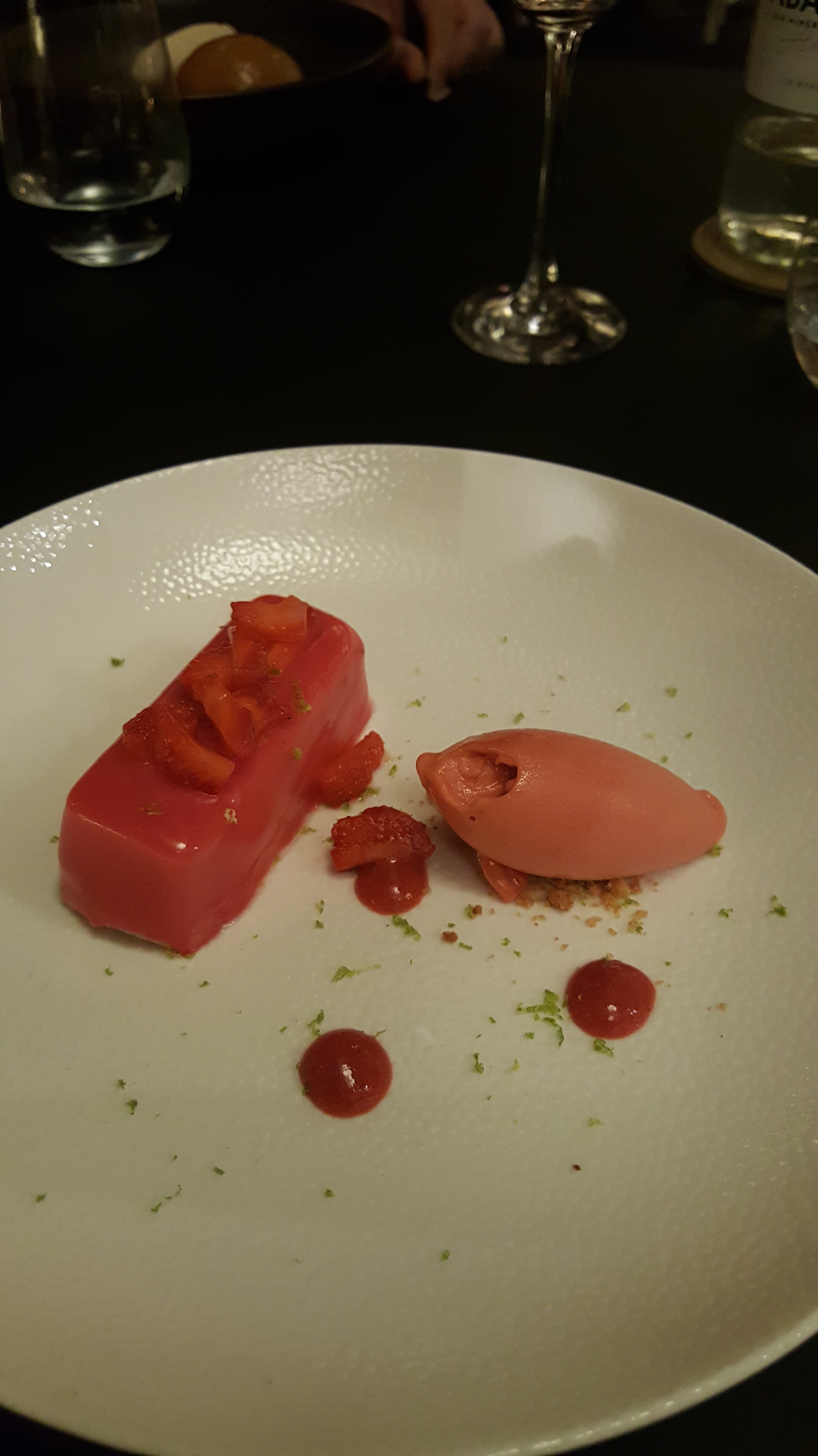 Un agréable moment passé pour le dîner. A l'exception de l'entrée à la saveur trop prononcée au zeste de citron vert, les plats étaient harmonieux et travaillés. L'accord mets et vins sur le repas en six temps était intéressant et plutôt bien accordé.