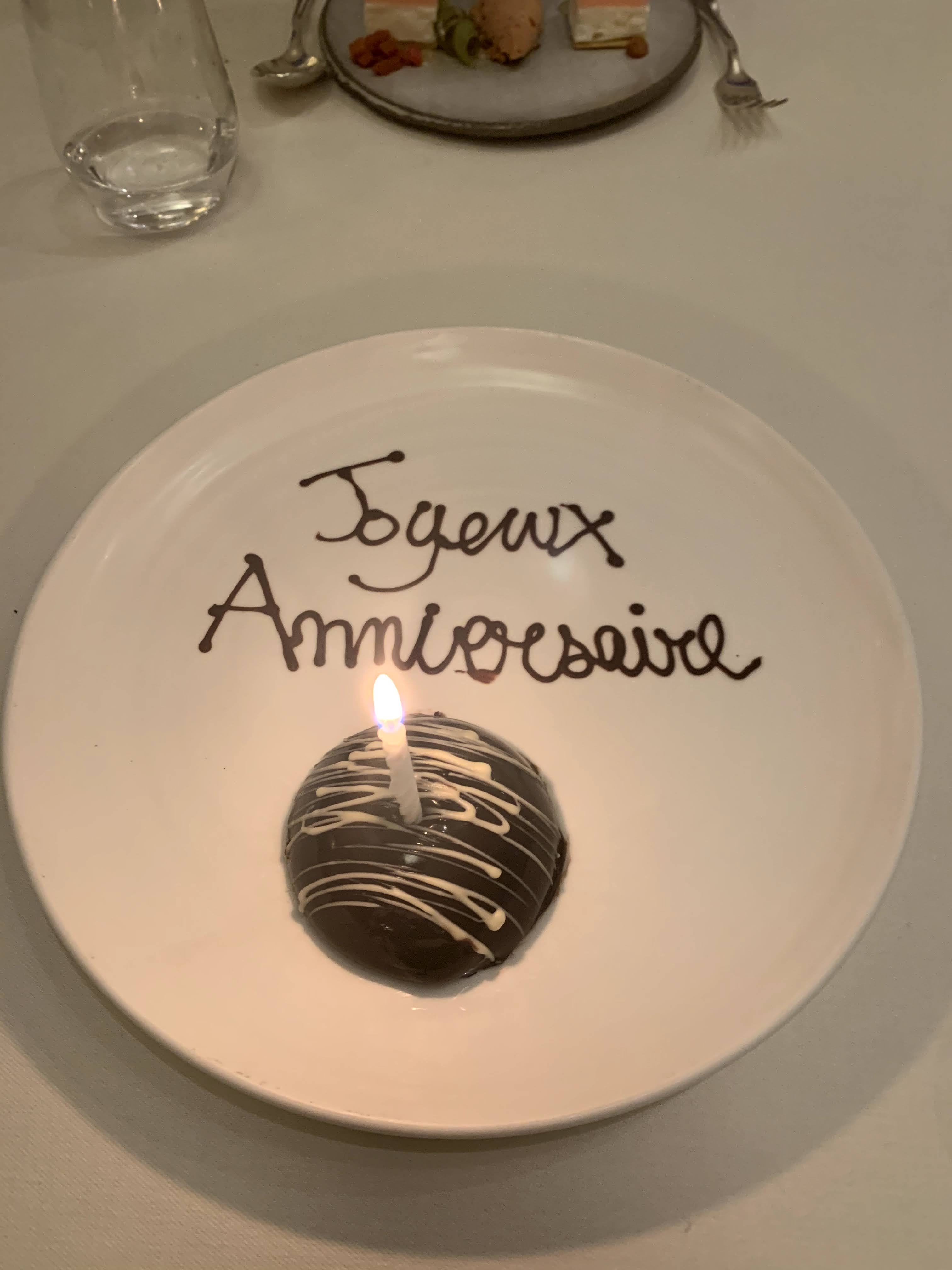 Une très belle soirée d'anniversaire dans un cadre merveilleux. Mention spéciale pour le cocktail accompagnant le premier dessert en remplacement du verre de Sauternes, improvisé par l'assistante sommelières, une association parfaite ! On reviendra avec plaisir.