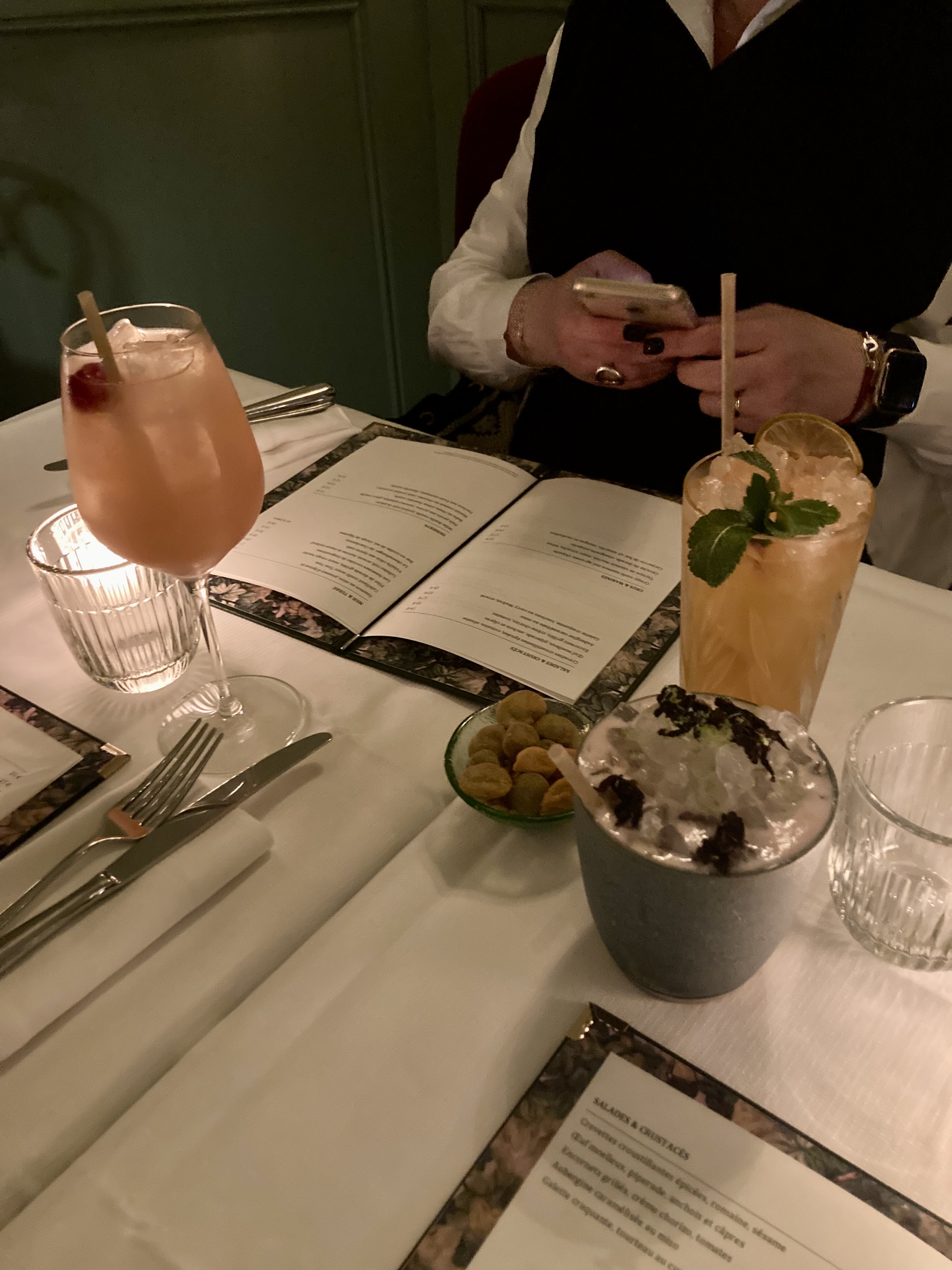 Très belle soirée...Le cadre est magnifique, les serveurs très agréables. Les cocktails sont très bons. Tout est savoureux de l'entrée au dessert , avec une mention spéciale pour le plat de ravioles aux langoustines! 1 cocktail, 1 verre de vin, entrée-plat-dessert, 1 café, comptez 95 euros par personne. La salle était complète...pensez à réserver! 1 petit bémol: dommage que l'accompagnement des cocktails soit des cacahuètes . Avec un cocktail à 15 euros, et dans un tel cadre, je m'attends à un autre accompagnement.