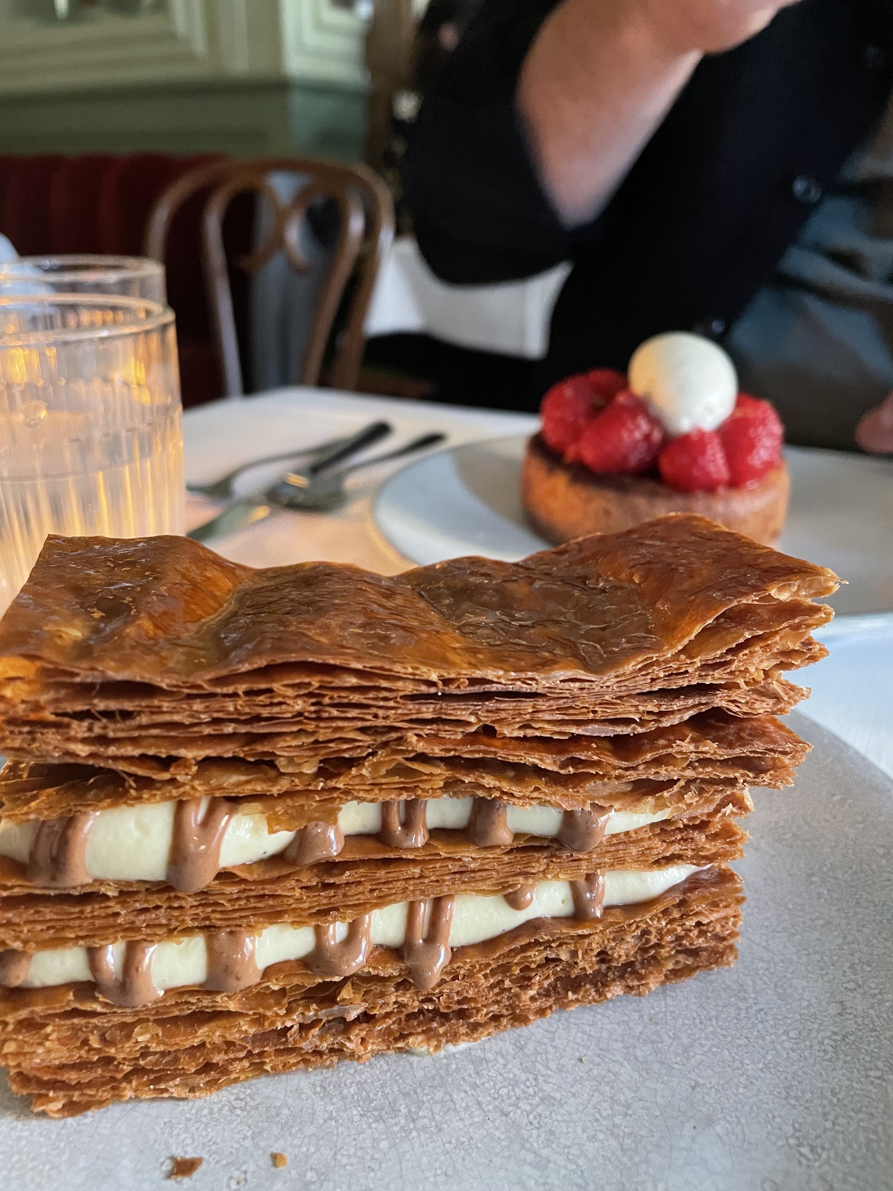 Un restaurant à tester, ravioles de langoustines à la bisque top ça fond dans la bouche, le mille feuilles vanille Tonka caramel noix de pécan top même si un peu trop sucré pour moi. plat dessert 2 verres de vin 75€/ personnes. En face il y a la chocolaterie et sur l'autre tretoire, la pâtisserie de Cyril Lignac et je confirme c'est bien gourmand et croquant.