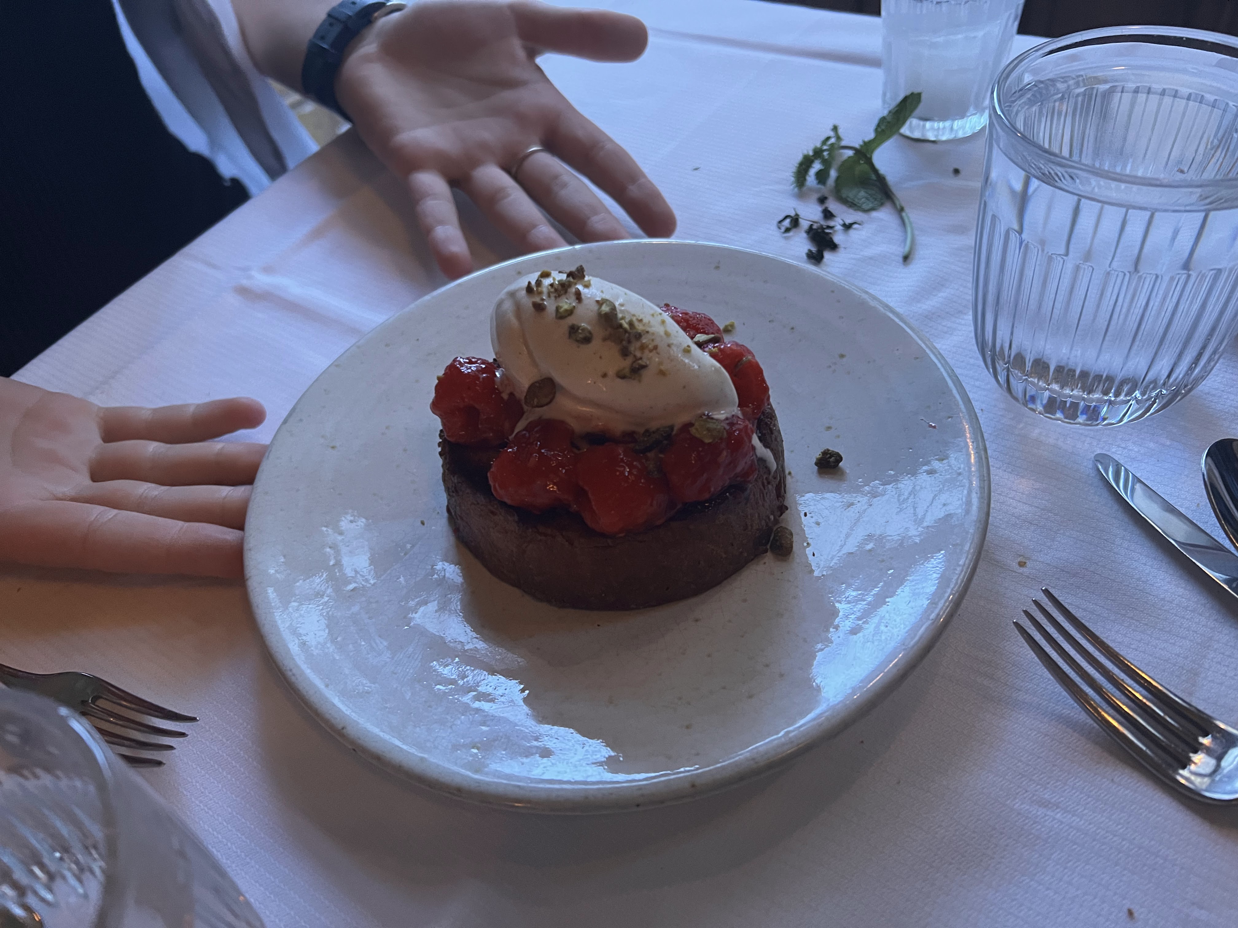 C est un bof bof Très déçus ( nous étions 8) par les plats servis. Nous nous attendions à de la bistronomie. Ma belle mère a commandé une épaule d agneau Gros doute sur l agneau au goût Très fort et également très gras( elle est femme de boucher et a travaillé 30 ans avec son époux ) Pour le coup, une toute petite épaule ,1 tranchounette:( 2 personnes ont choisi le lobster roll aux miettes de homard avec quelques frites... Mais ou est ce Homard!? Moi , le gnocchis straciatellas...alors les straciatellas, sont des fines tranches de parmesans🤣🫣...un coulis de tomate hyper acide, j en ai encore mal au ventre... Le carpaccio de daurade etait hyper salé Bref 8 personnes déçues par ce restaurant.