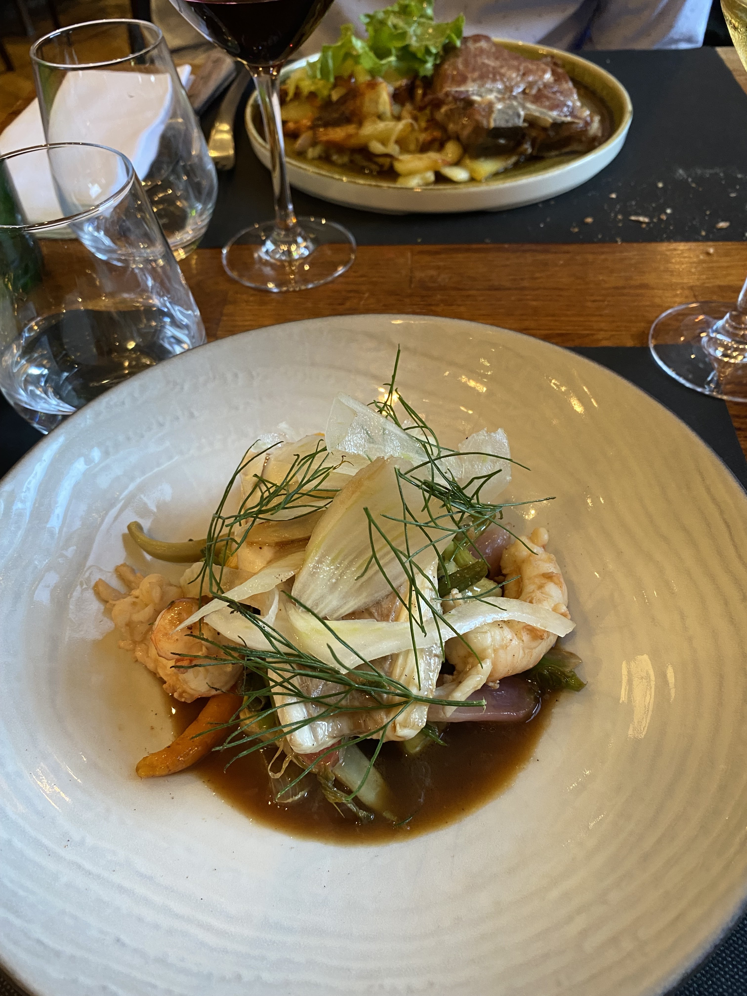 Restaurant très agréable tant pas l’accueil que par la déco. Dîner succulent. La carte des vins est très riche et les vins sont excellents bien qu’un peu chers mais nous avons passé un très très bon moment et nous nous sommes régalés !!