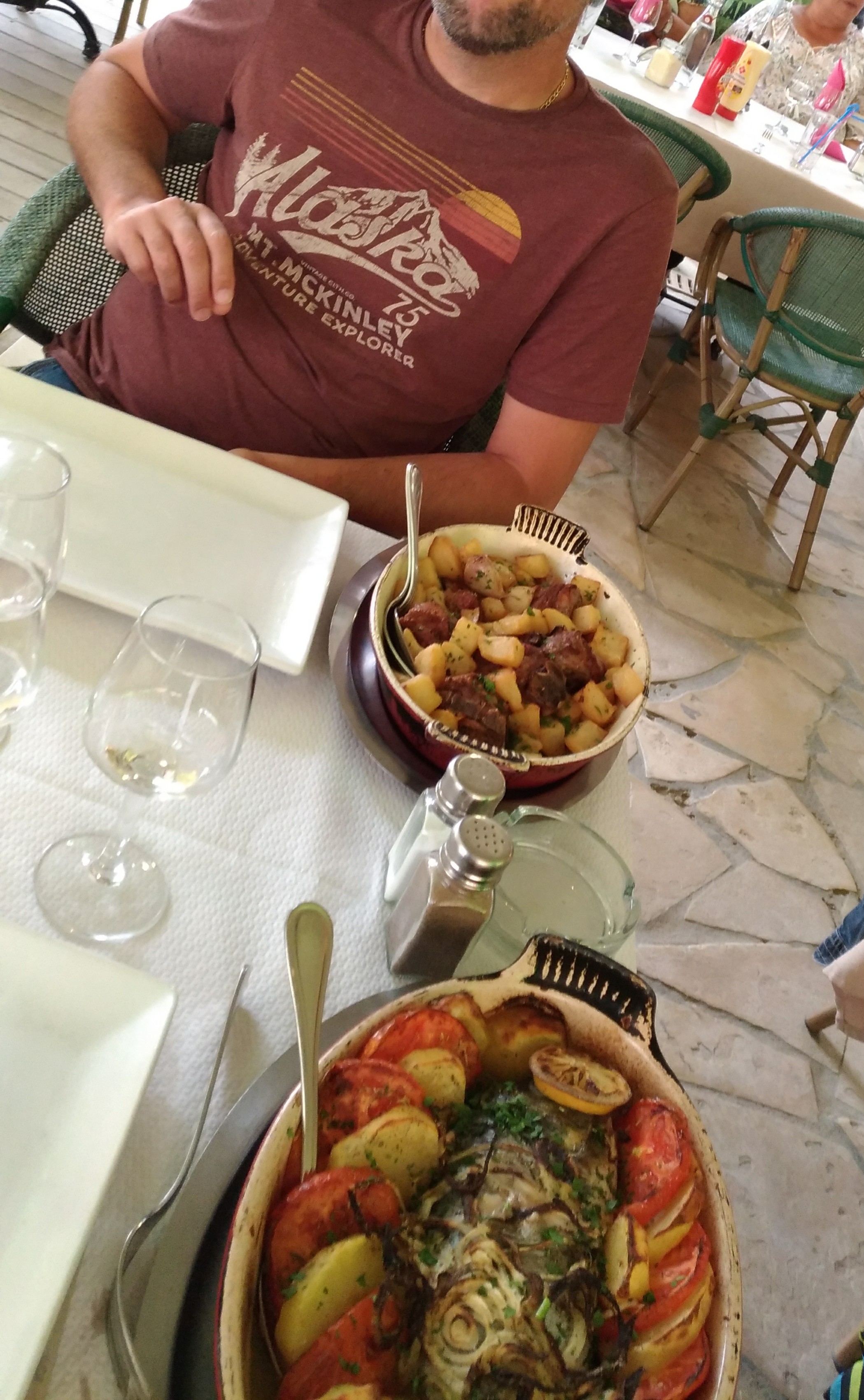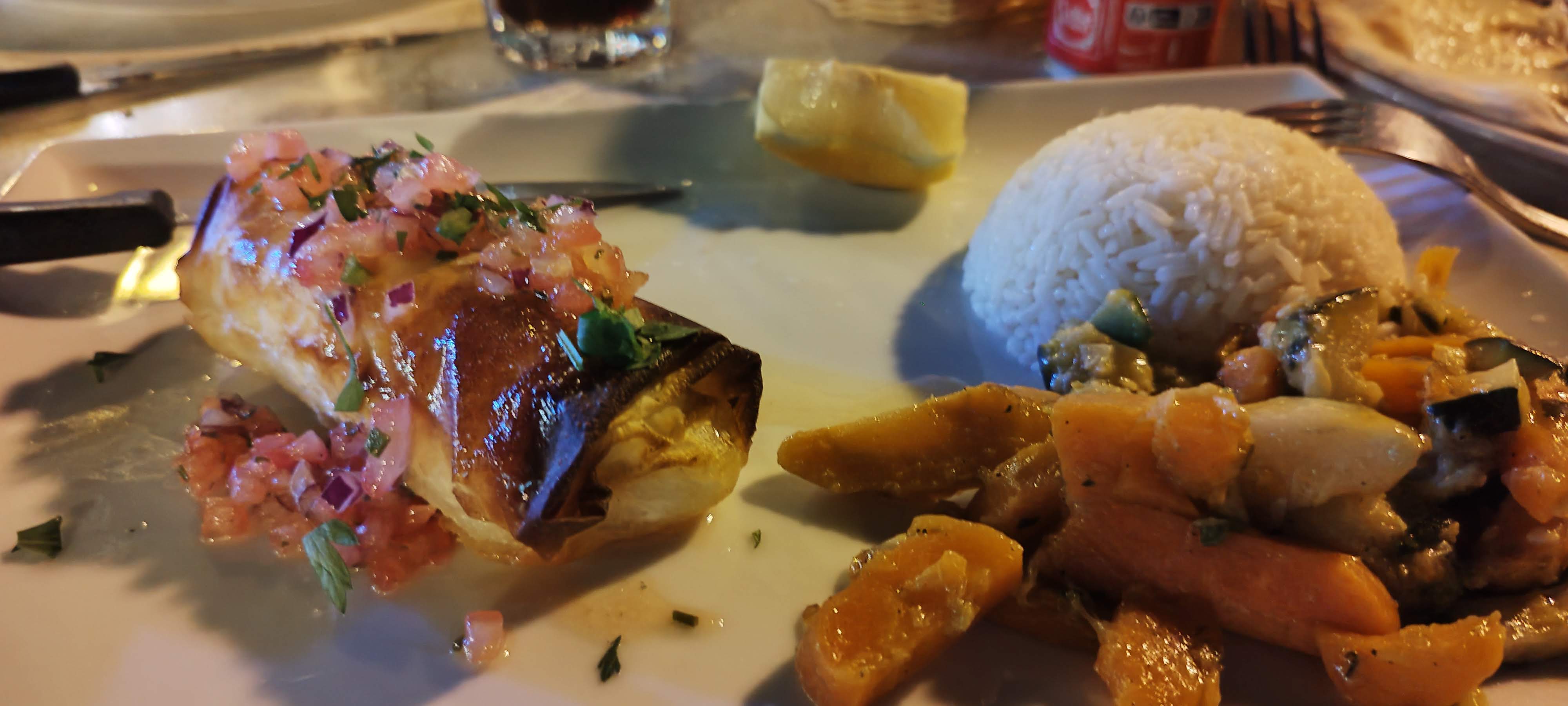 Nous avons principalement bien mangé, cependant on sent bien que ce restaurant est une usine, les serveurs courent tout le temps, n’ont pas forcément le temps pour vous. J’ai demandé une fois un cendrier que je n’ai jamais eu… les serveurs sont principalement sous tensions, sûrement la fin de saison qui veut ça. Je ne recommande pas les calamars qui sont trop durs et caoutchouteux sinon le reste était super bon.