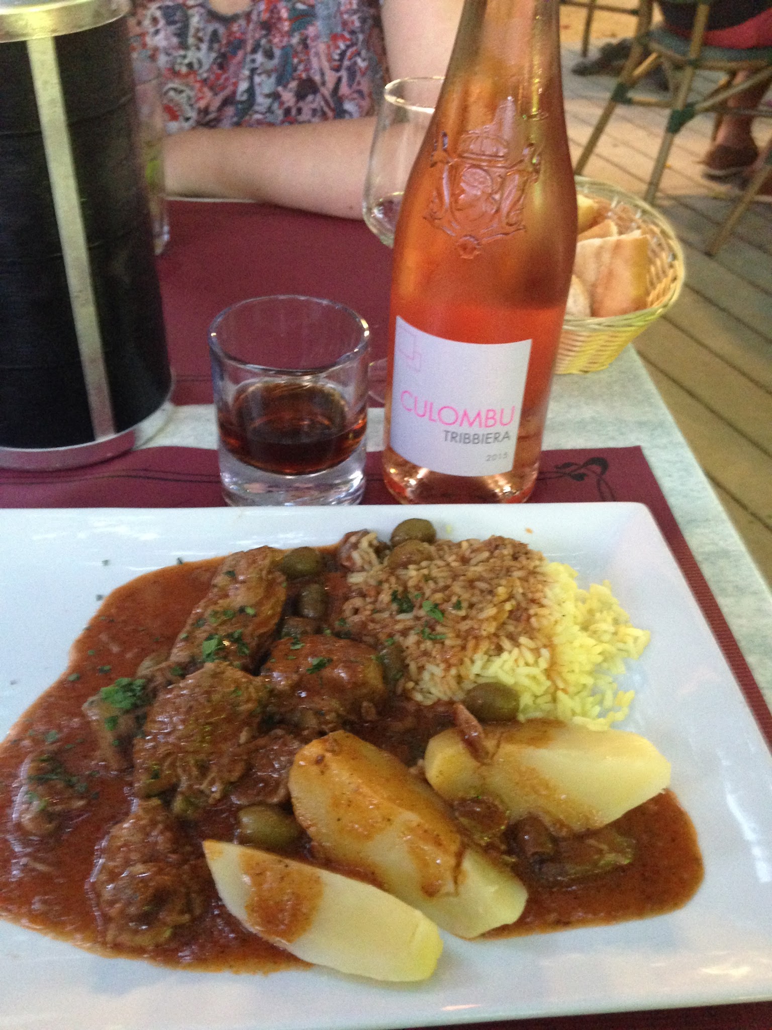 Malheureusement pour la bonne ambiance de notre soirée, nous nous sommes d’abords presque fait jeter les couverts dessus par une jeune serveuse qui ne nous a même pas dit bonsoir, puis engueuler par Renault parce qu’on ne prenait pas de boissons et enfin apporter les plats à 15min entre le poulet et une pizza. Vous l’aurez compris, les plats sont préparés à l’avàce, la qualité des produits soit disants corses n’es pas au rendez-vous et c’est vraiment l’usine qui fait qu’aucun serveur ne se sent concerné par des gens qui veulent manger simplement et rapidement avant d’aller boire un verre dans un endroit bien plus sympa.