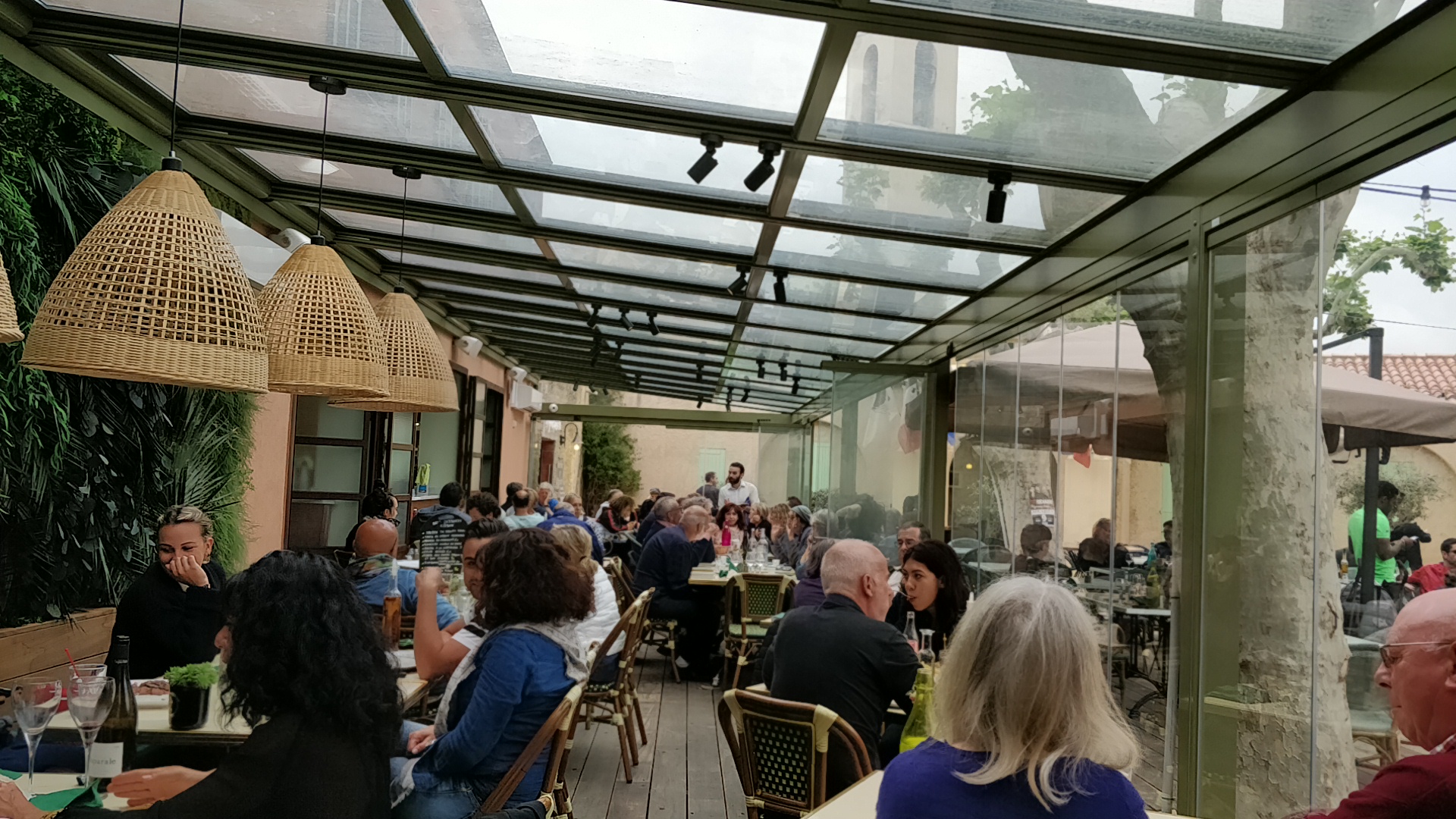 Convivial, ambiance du sud sous les arbres et les guirlandes. Nous avons bien mangé et passé une bonne soirée. Les pizzas sont top