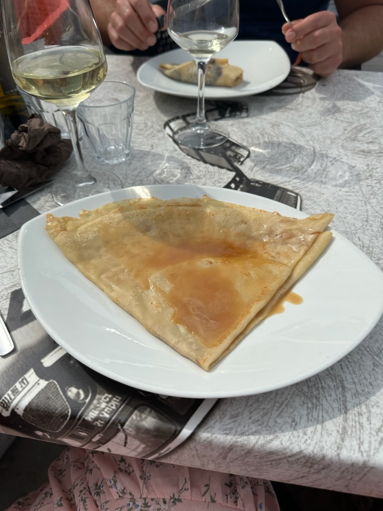 Pas terrible du tout, jouent sur la vue. j'y suis allée 4 fois je suis indulgente : 1ère fois correcte. 2eme fois : le café n'est même pas servi avec une petite friandise comme chez les concurrents. 3ème fois : A 10h30 du matin avec seulement 3 personnes qui prennent un café en terrasse on ne peut pas vous servir une crêpe ( je croyais que c'était du fait maison, la pâte à crêpes n'est pas deja préparée ?). 4eme fois : j'ai attendu 45 min qu'on vienne me dire de changer de table car deja réservée, puis personne n'est venu prendre la commande, je suis partie. J'irai au crabe vert juste à côté la prochaine fois !!! vue aussi belle et bonnes crêpes !