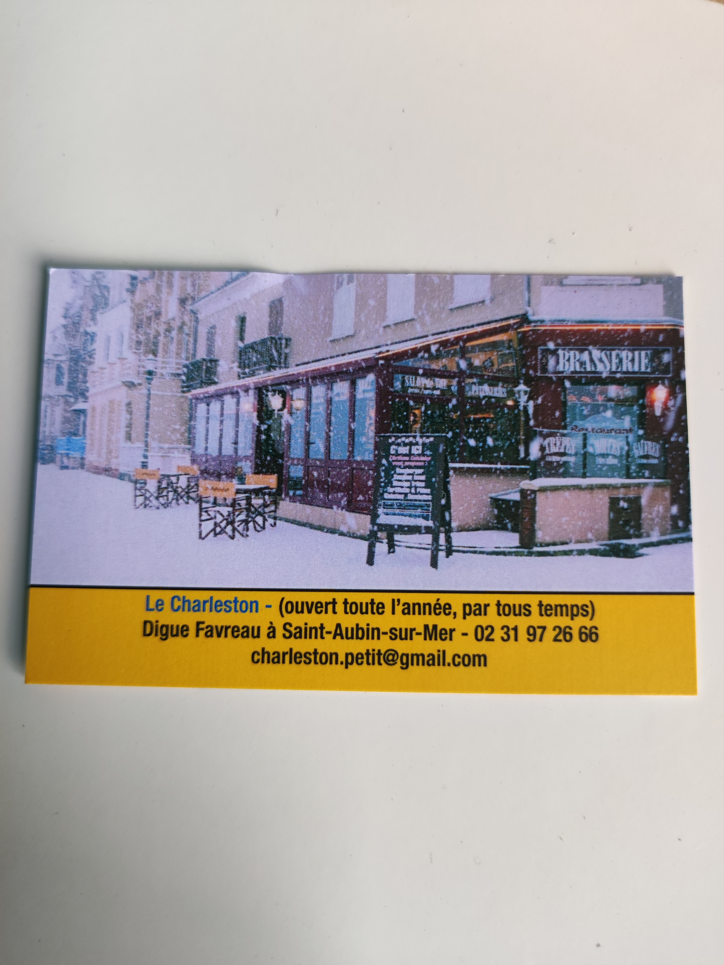 Salut aux gourmands... un petit message pour rapporter notre superbe après-midi ce lundi à Saint-Aubin sur mer au Charleston avec Moules-frites marinières, Hamburger Depardiou, galette complète et un excellent Chardonnay dont nous avons descendu plusieurs bouteilles avant d'aller se baigner dans une mer étale et chaude ! Dingue... Super terrasse toute simple au pied du sable... nous avons squatté une grande partie de l'aprème sans qu'on nous bouscule ce qui est un luxe à notre époque. Merci à la patronne, au cuistot et une mention spéciale pour notre délicieux serveur si gentil qui saura vous cajoler d'un divin Irish coffee : bravo et merci cher Axel ! On t'embrasse et on reviendra. Sûr. Un très bon souvenir et aussi de l'émotion, que nous n'oublierons pas. (-; Fred. Jean-Hugues et l'inénarrable Michèle !