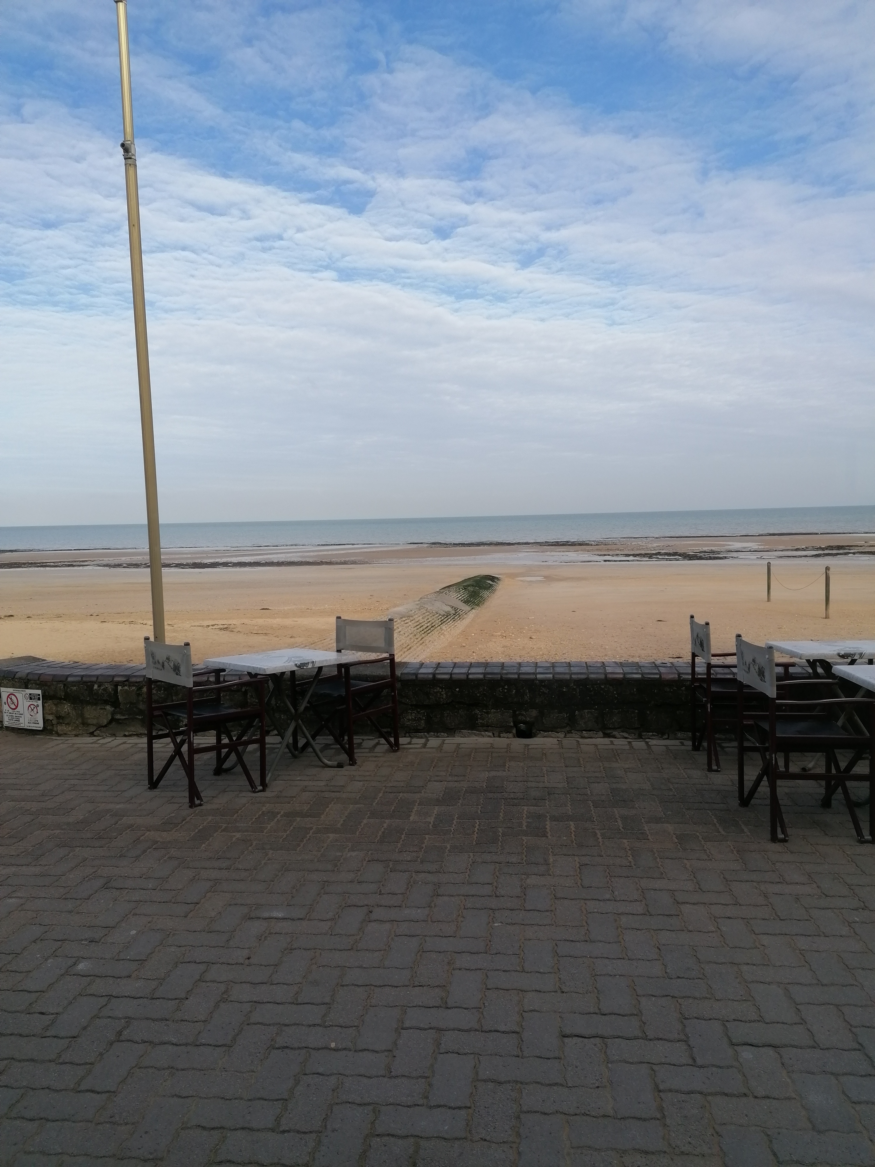 Face à la mer....lalala, resto où il faut réserver pour avoir vu sur la mer depuis la terrasse...quand il pleut...et oui c'est la Normandie, sinon il y a des tables à l'extérieur, arrivé a 4 sans resa, on nous trouve une table au milieu de la salle... bouuouuou !!!,on vient de loin, on aurait voulu déjeuner en voyant la mer, pas de problème, nous allons vous loger à l'étage, fantastique...un étage pour nous 4 avec vue sur les plages du débarquement, ça c'est du service. Prise de commande rapide, petit apéro et ils envoient les plats, très bon et copieux, suivent les desserts, tous ça accompagné d'un petit coup de Kékette... bière locale et pour finir une note nettement moins salée que la mer, donc, visiteurs de la Verte Normandie, n'hésite pas à franchir le seuil de cette établissement...tu ne seras pas déçu.😉 Ah si un petit bémol...la déco... très... seventies...mais tout n'est qu'une affaire de goût.