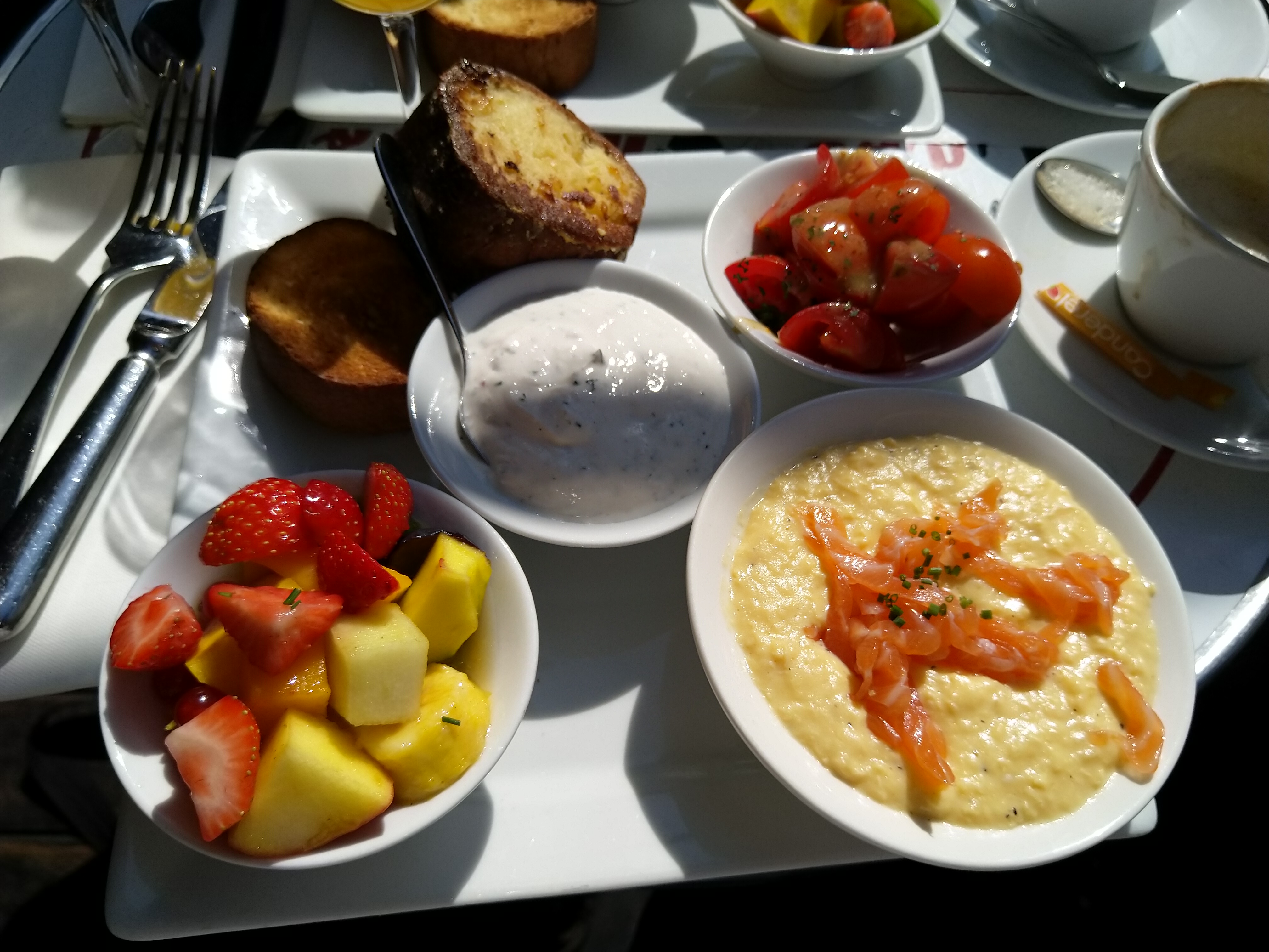 Le menu du brunch est bien composé, mais par une froide matinée dominicale je renoncerai s'il ne reste que des places en bordure de terrasse, pas assez isolée, et il y a trop d'affluence pour que ce soit servi bien chaud, dommage de trouver tièdes le chocolat dit chaud et les œufs brouillés.