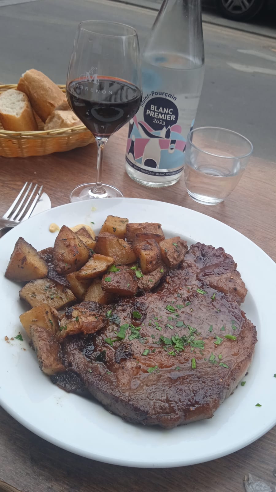 Petit resto de quartier. Un pur bonheur parisien. Côte de bœuf et pommes de terre à tomber
