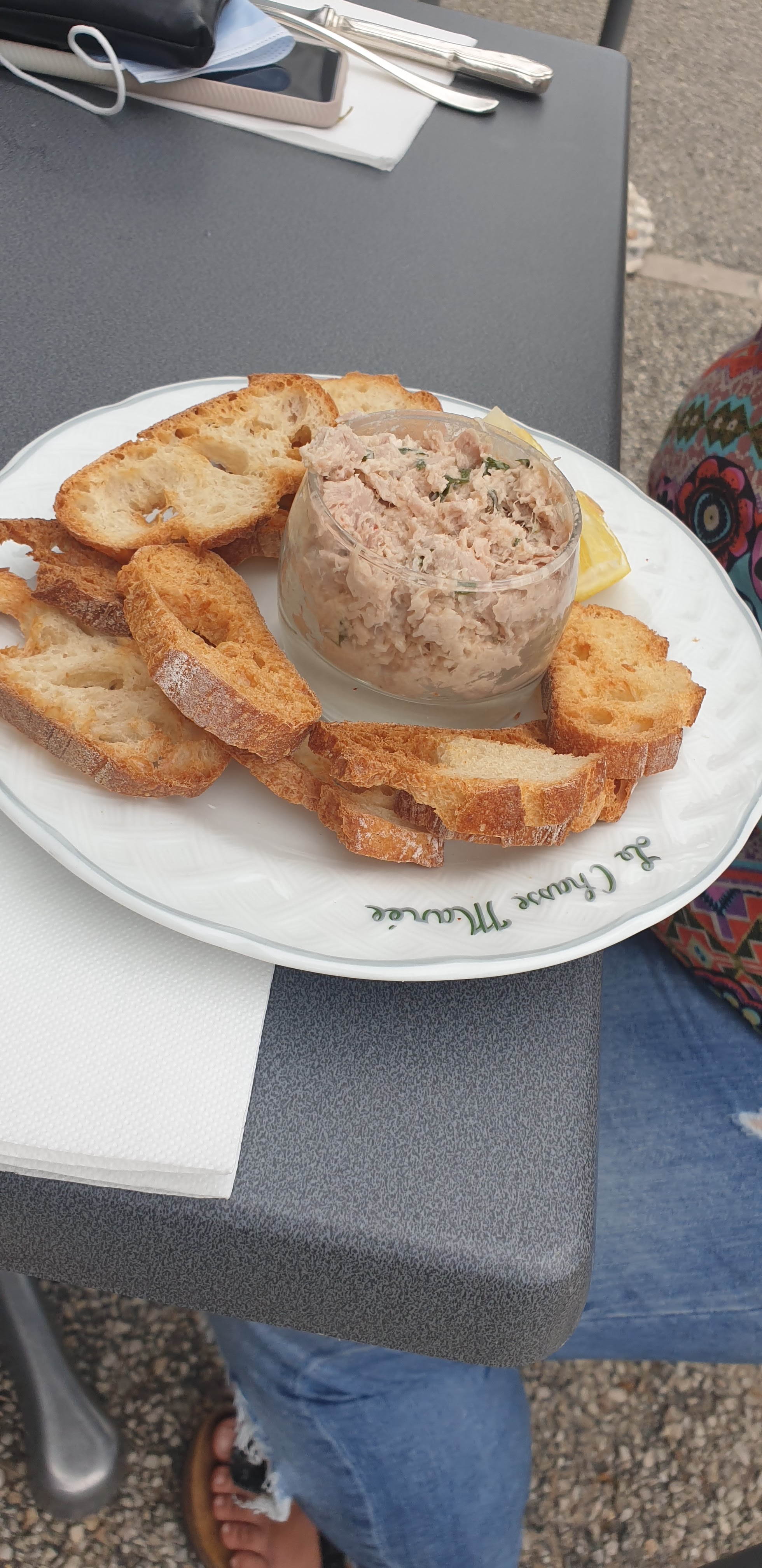 Le charmant restaurant s'est arrêté pour prendre un déjeuner après avoir roulé sur nos vélos. J'ai eu ici le meilleur vin rosé que j'ai eu pendant nos vacances en France. Les sardines que j'ai mangées ici étaient sublimes. C'est agréable de pouvoir regarder les gens au marché tout en mangeant. Je recommande vivement.