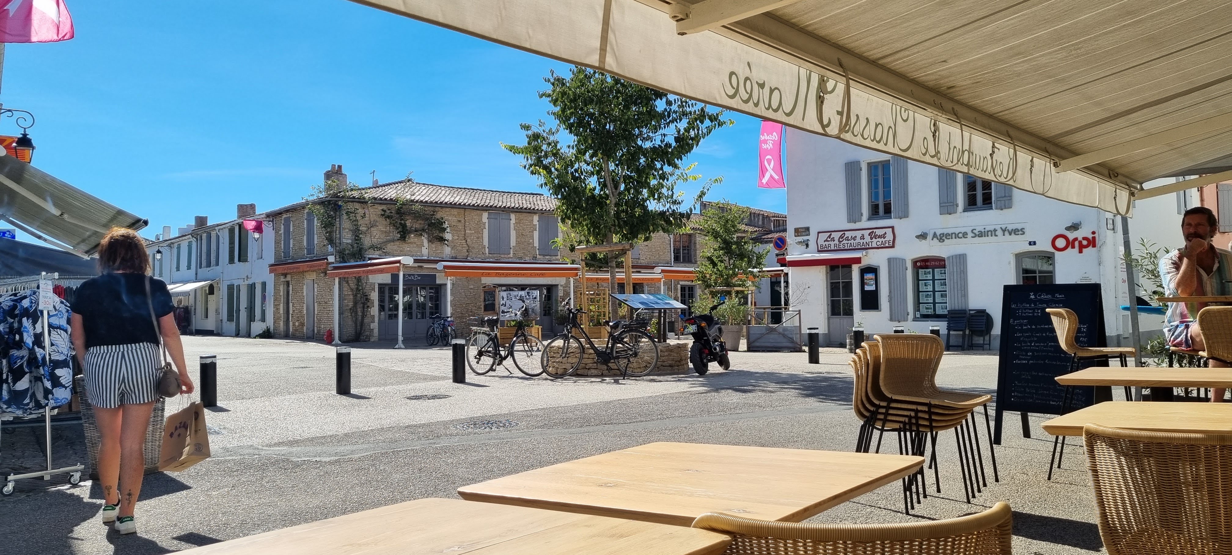 Restaurant dans le centre des portes en Ré, jonchant le marché, avec une très bonne qualité des produits à la carte mais prix pouvant être élevés. Pour 1 plat, dessert et une bouteille d’eau, ne compter pas moins de 25 euros.
