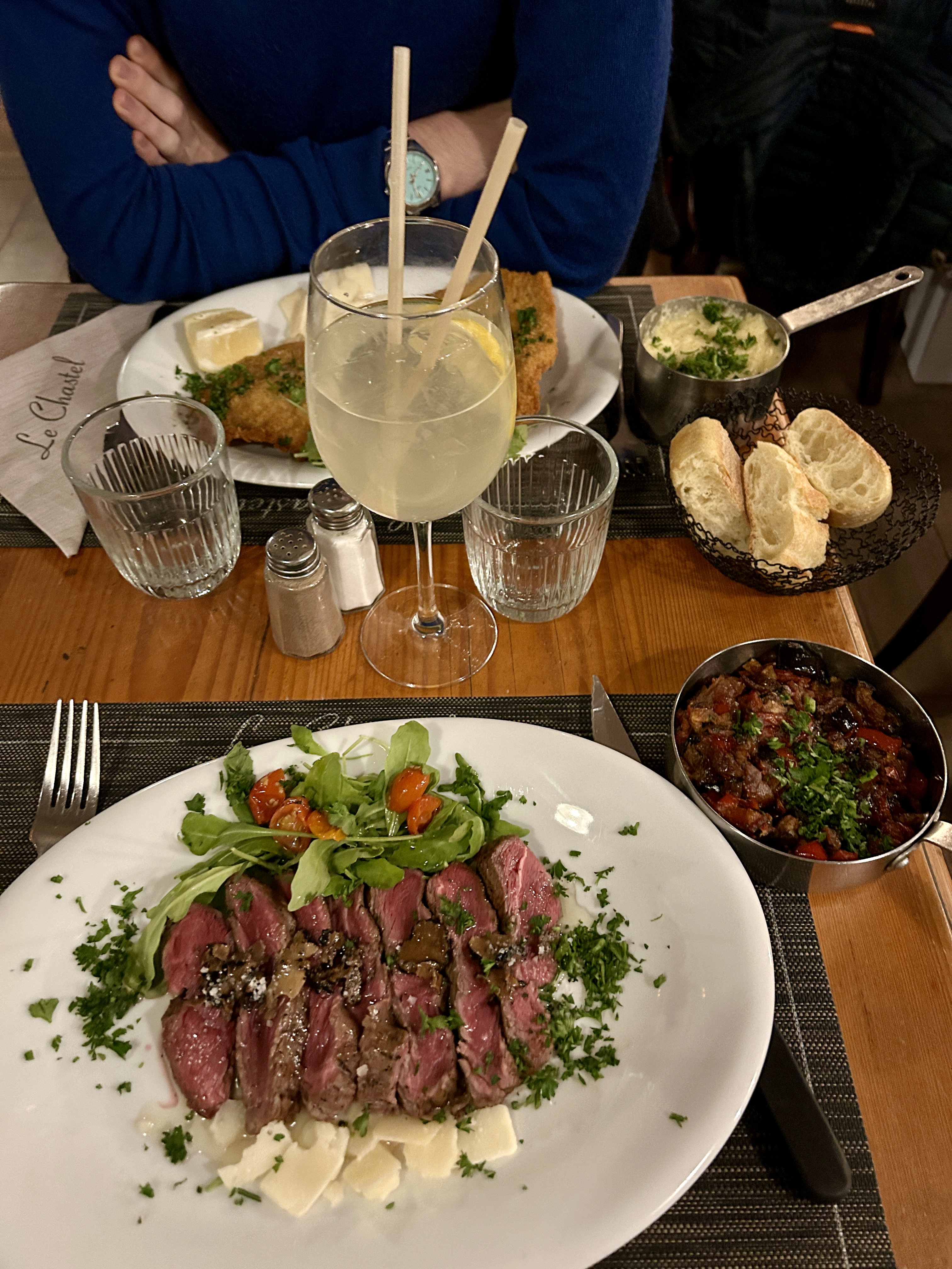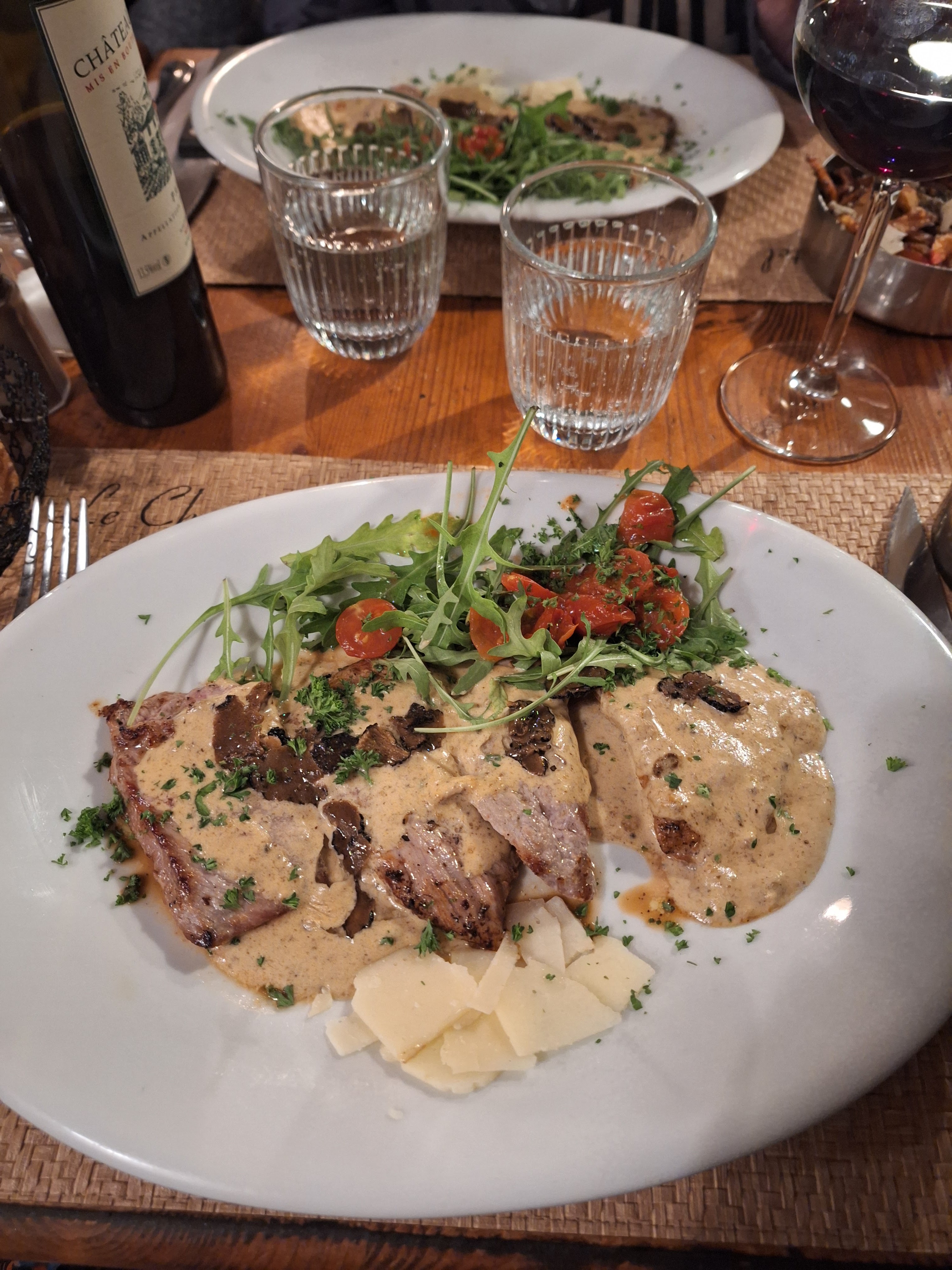 Un peu bruyant dommage mais par contre on y mange divinement bien, les plats à la truffe et les desserts sont extra et copieux 👍🏼