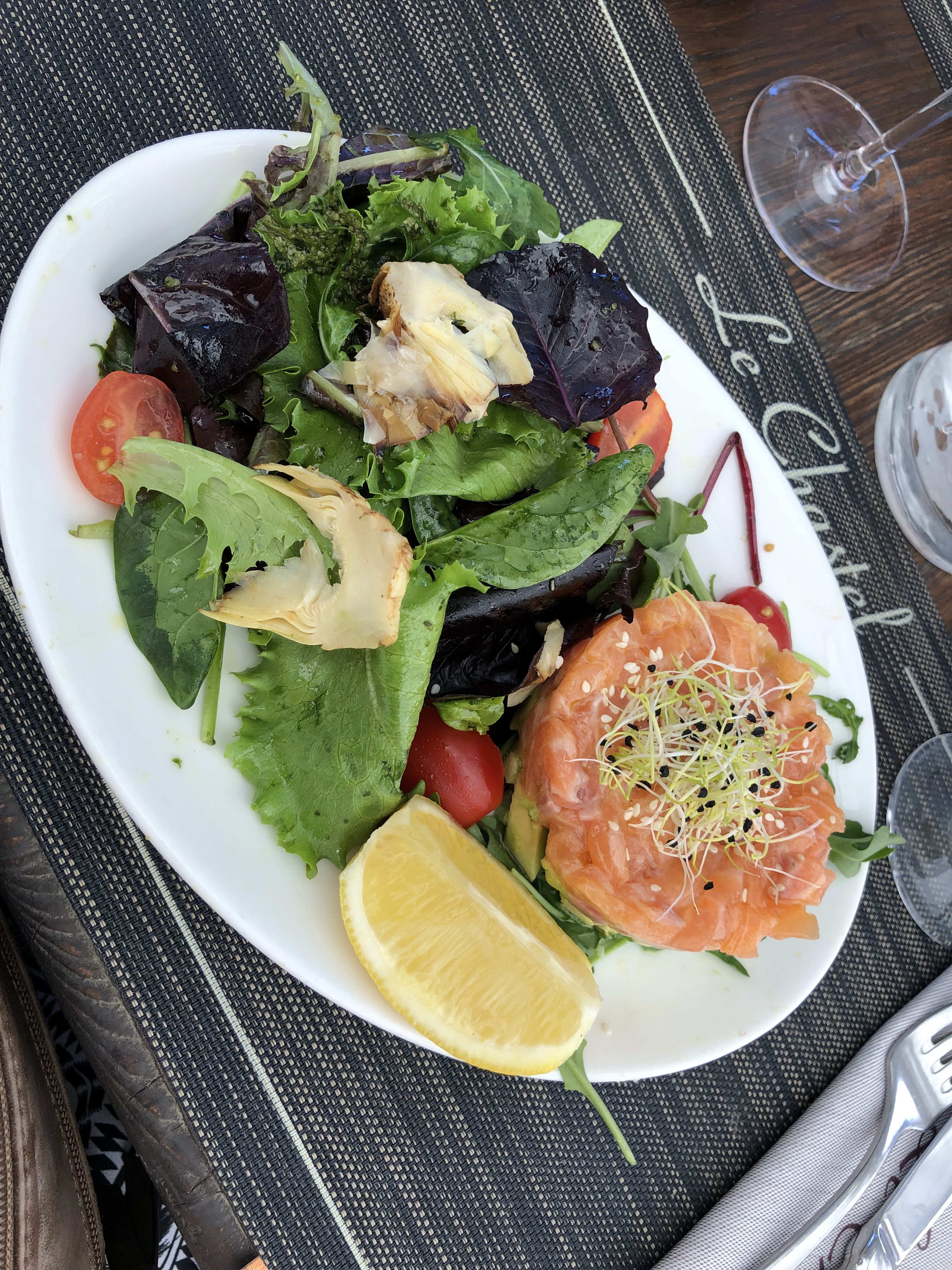 Déjeuner un samedi midi dans ce joli restaurant bien situé mais en retrait des artères touristiques. L'équipe est chaleureuse et professionnelle. La terrasse ombragée, très agréable par plus de 30 degrés. Beaucoup d'attente mais service complet donc tout à fait normal. Malheureusement les plats n'étaient pas à la hauteur du reste , nous avons du tomber sur un mauvais jour: tartare à la truffe gras, frites très salées, souris d'agneau sans plus pour le prix. A refaire en semaine sûrement.