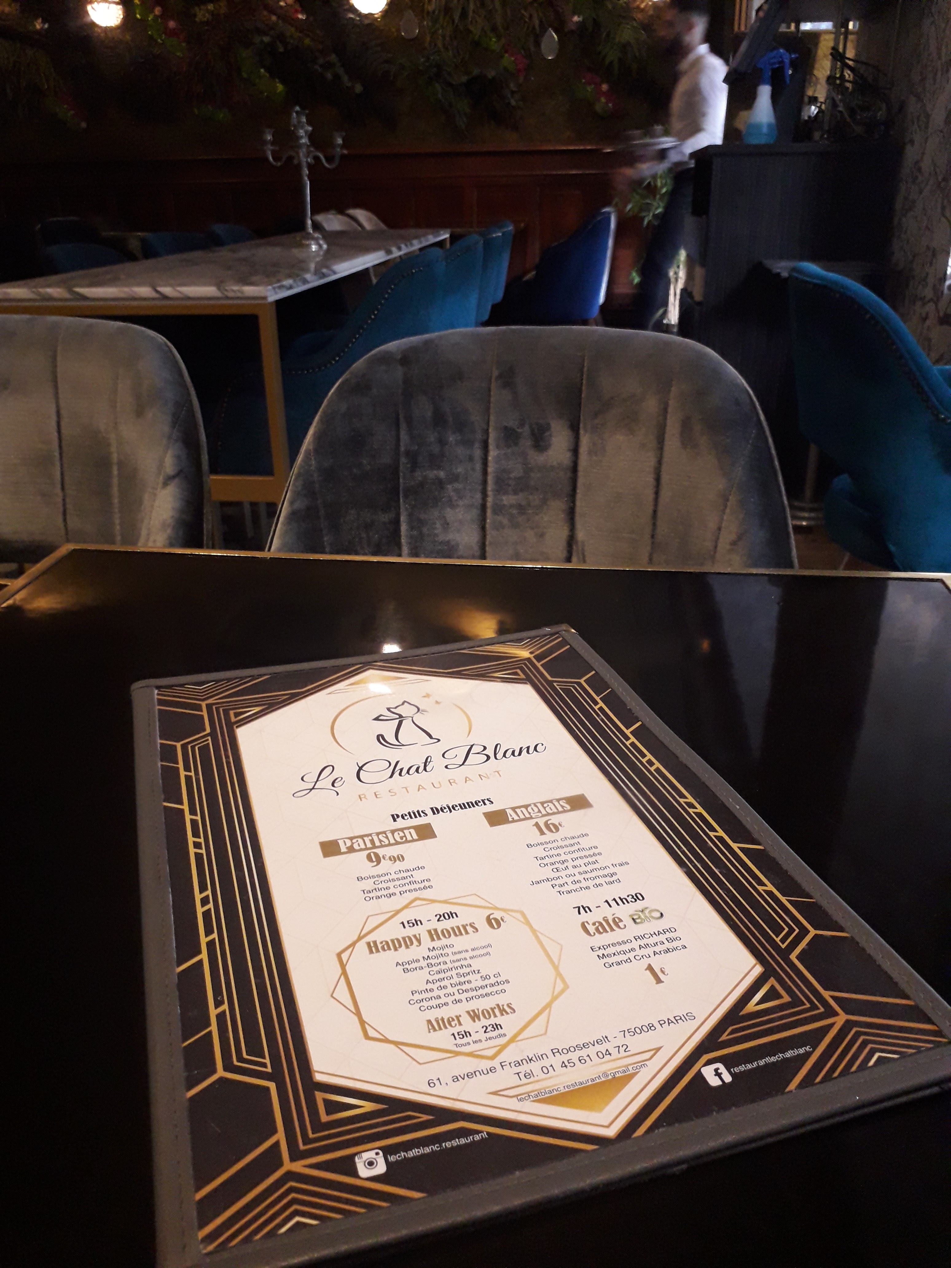 J’ai découvert le chat blanc samedi dernier on y a fêté un anniversaire en un mot : TOPISSIME ! Je vous le conseille pour l’Entrecôte ! Et le Dj le week end ! 🤩 Superbe déco classe et cosy
