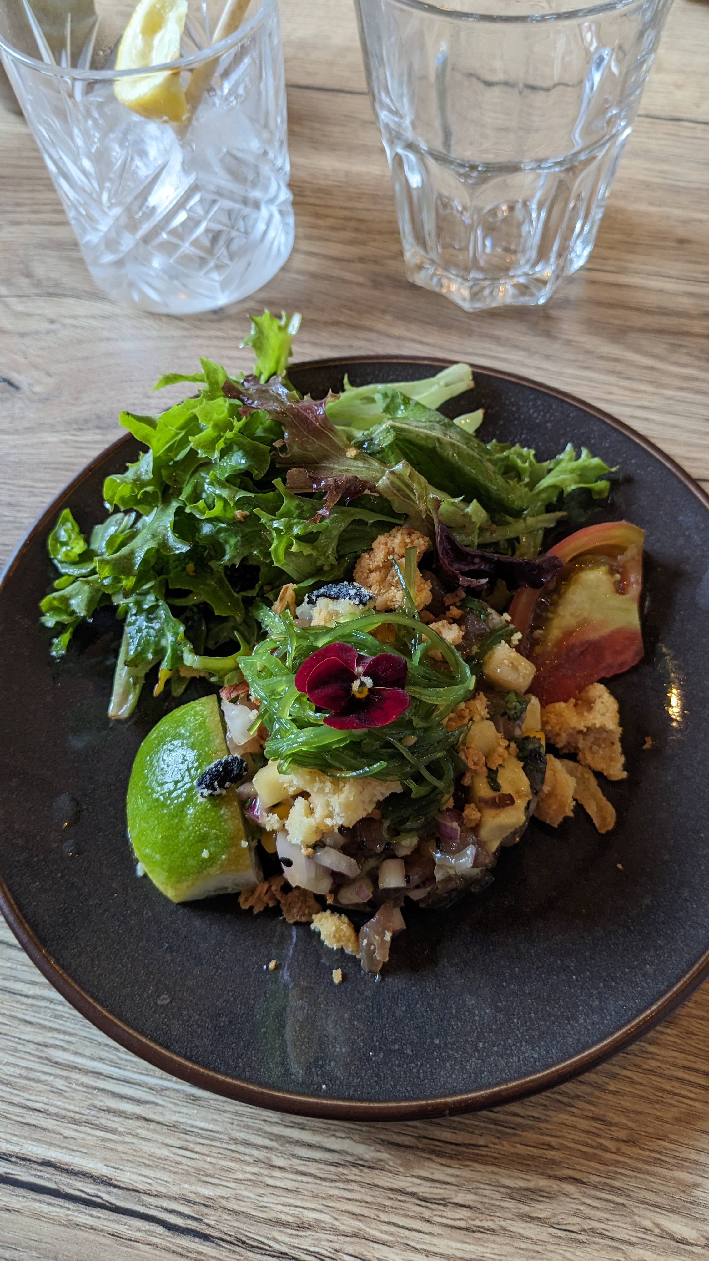 Repas très bon dans l’ensemble Le saumon gravlax je l’ai trouvé trop salé malheureusement et pas assez orange Le service est parfait Si l’envie vous prend d’un cocktail sans alcool ils en font à la demande qui sont très bon. L’ice Tea maison est très bon Le tartare est excellent La salade au quinoa aussi est bonne Le thon mi cuit est une merveille Le Quasi de veau au top Ambiance très calme agréable Merci de m’avoir écouter pour le côté commercial c’est géniale.