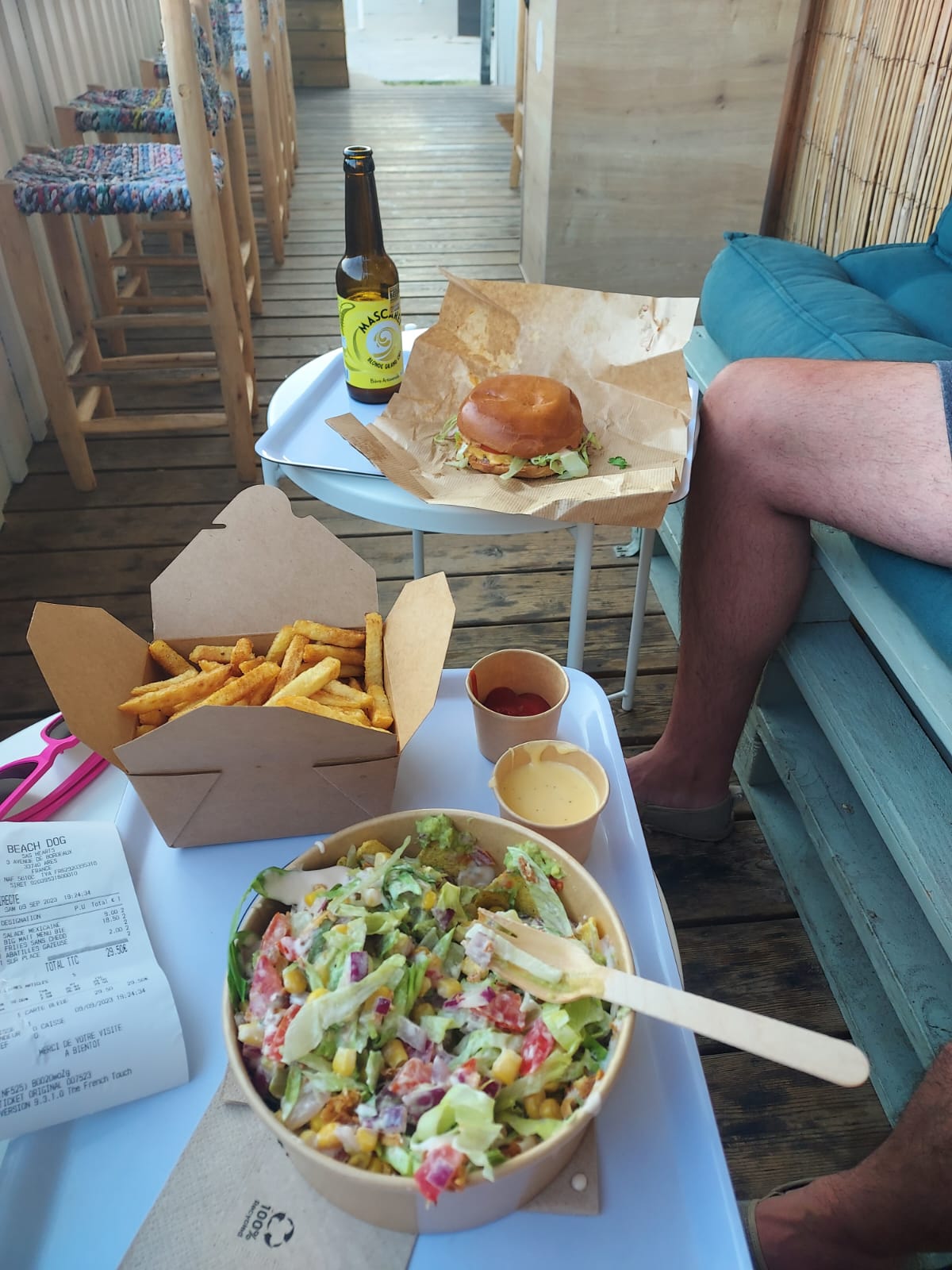Nous avons pris une salade et un burger. Merci pour l'accueil même en fin de service. Je recommande au top pour reprendre des forces avant de partir à la plage.