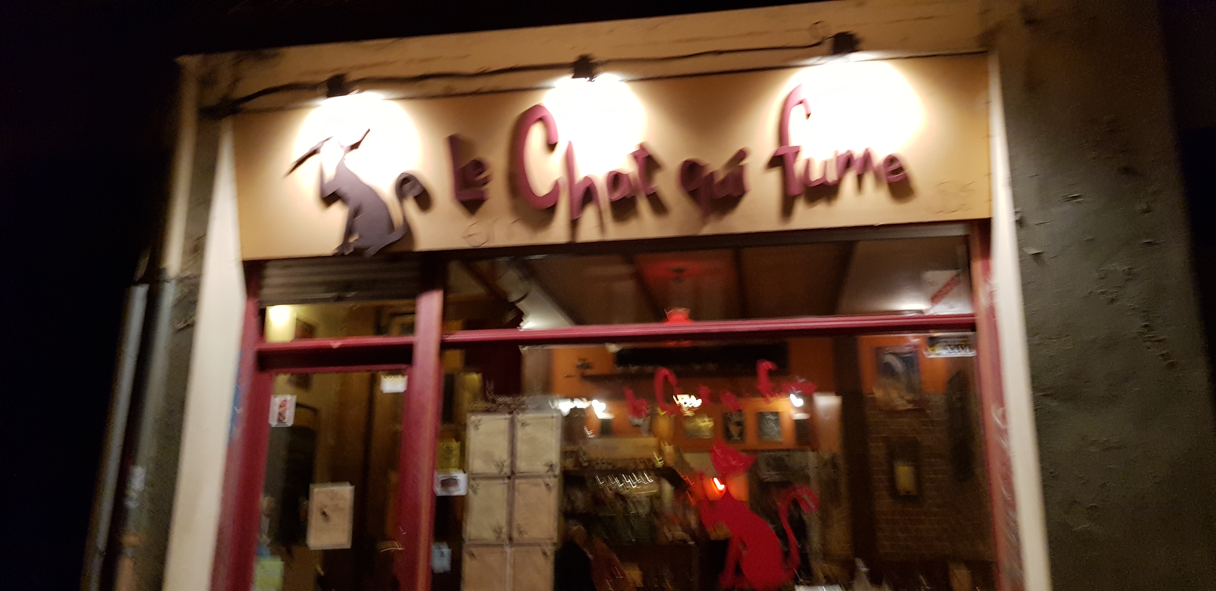 Pour rappeler le contexte je suis sortie d'un bon bar avec une bonne bière à la pression. Et j'ai fini la soiré ici sur le conseil du Barman de venir manger au Chat qui fume. Alors pour commencé vous êtes accueilli par un homme rasé avec la barbe mais il ne mort pas, il vous accueille meme chaleureusement. Ensuite vous avez un serveur et deux cuistots. On était deux et on a tous les deux rellement bien mangé pour pour un plat avec bière et café pour un prix raisonnable. Personnellement j'ai testé le marouaille (dsl de l'orthographe) cuit avec pomme de terre etc... et j'ai tellement aimé même si je n'étais aucunement de coin. Mon pote aussi c'est régalé. Franchement on est clairement au dessus de la moyenne des restaurations. Je conseil vivement d'aller la bas si vous cherchez un endroit pour manger quelques chose du coin. Mon avis est fait de façon à être objectif, donc si il vois plaît, n'hésitez pas à le liker pour que d'autre puisse le lire en premier, sauf si mon avis est vraiment nul, lol. Merci à la team minou et j'espère pouvoir revenir une dernier fois manger sur place lors de mon prochain déplacement. PS : il y a le menu chaton pour les enfants et même un savon lave mains de la marque Lechat. On vise le détail dans se restaurant. Sur ce A+