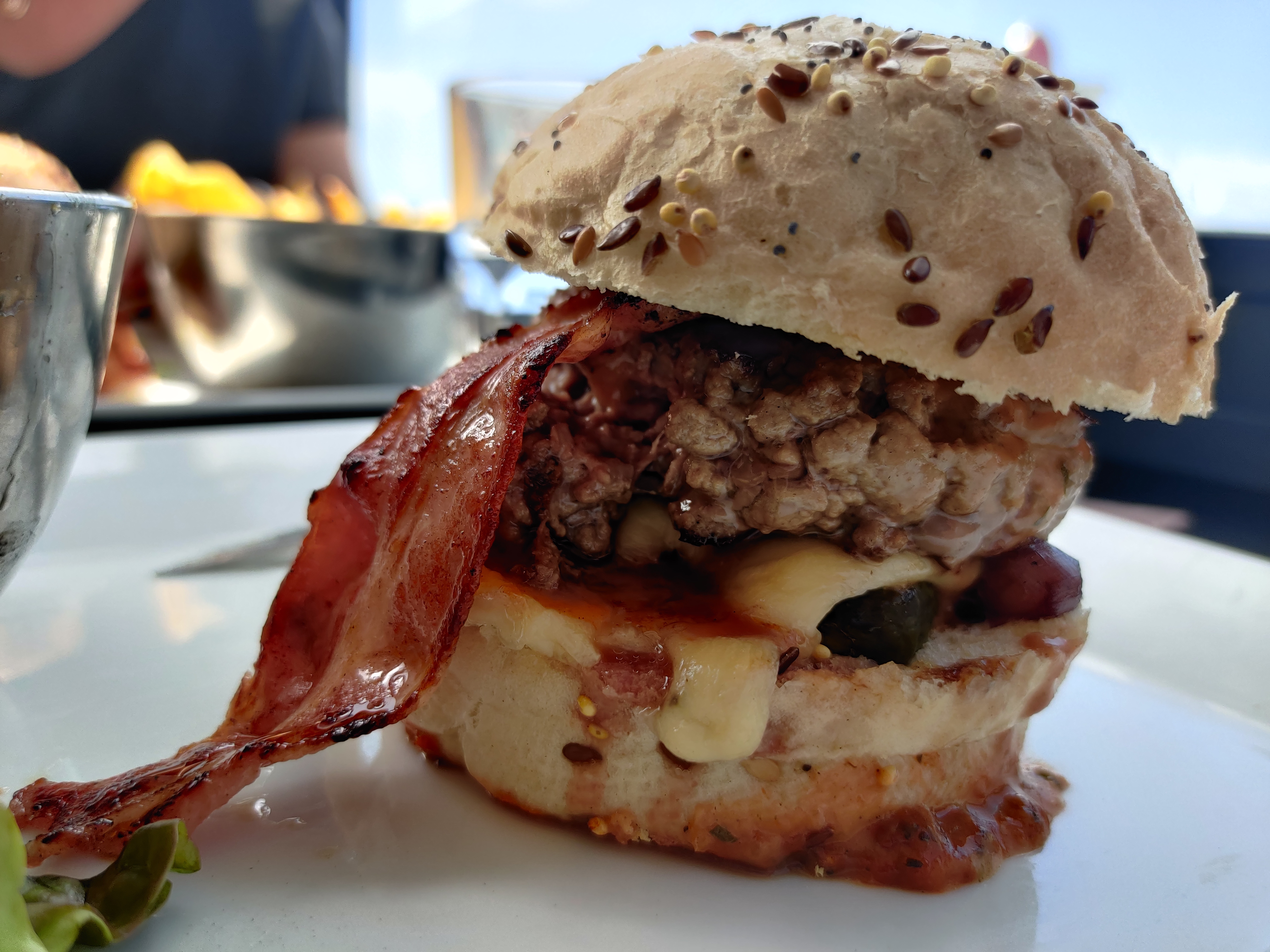 Le quart de tomate, la rondelle d’oignon et la demie feuille de salade défraîchie n’ont pas réussi à sublimer le burger. Quant aux coquilles de moules vides, un récipient n’est toujours pas arrivé après 3 relances pas plus que la carafe d’eau. Ce qui a permis de manger le dessert au milieu des coquilles. Tout cela était la suite d’un apéro bien long où les tapas sont arrivées 30 minutes après les boissons. Le service est un métier, il est encore temps d’engager une reconversion professionnelle. Nb: L’hygiène des toilettes ??