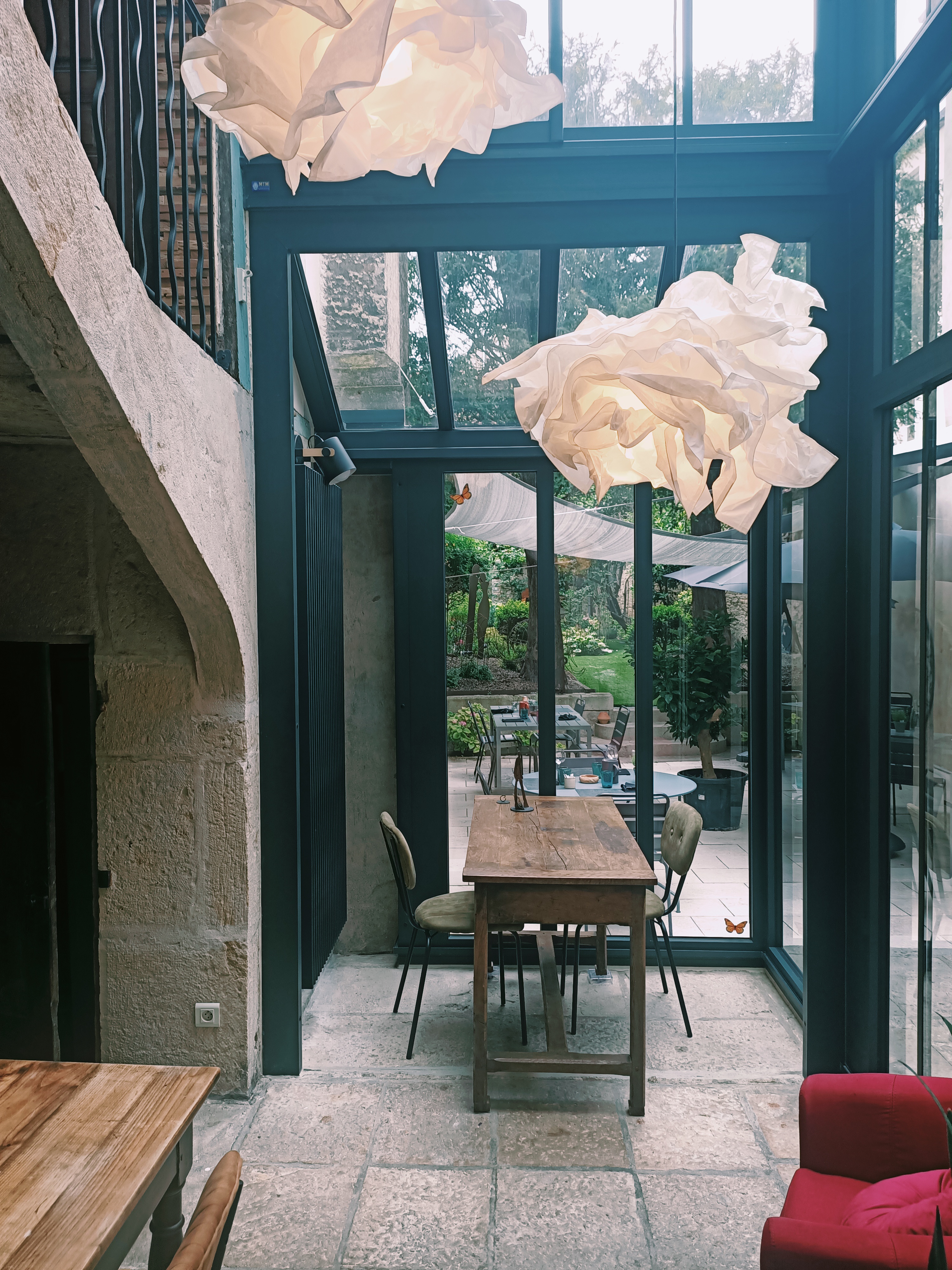 Pousser la porte en bois du chat qui pense . Derrière on y trouve un magnifique lieu, avec un super accueil et une super cuisine! Restaurant chez l'habitant atypique et unique à Dijon. A refaire sans hesitation
