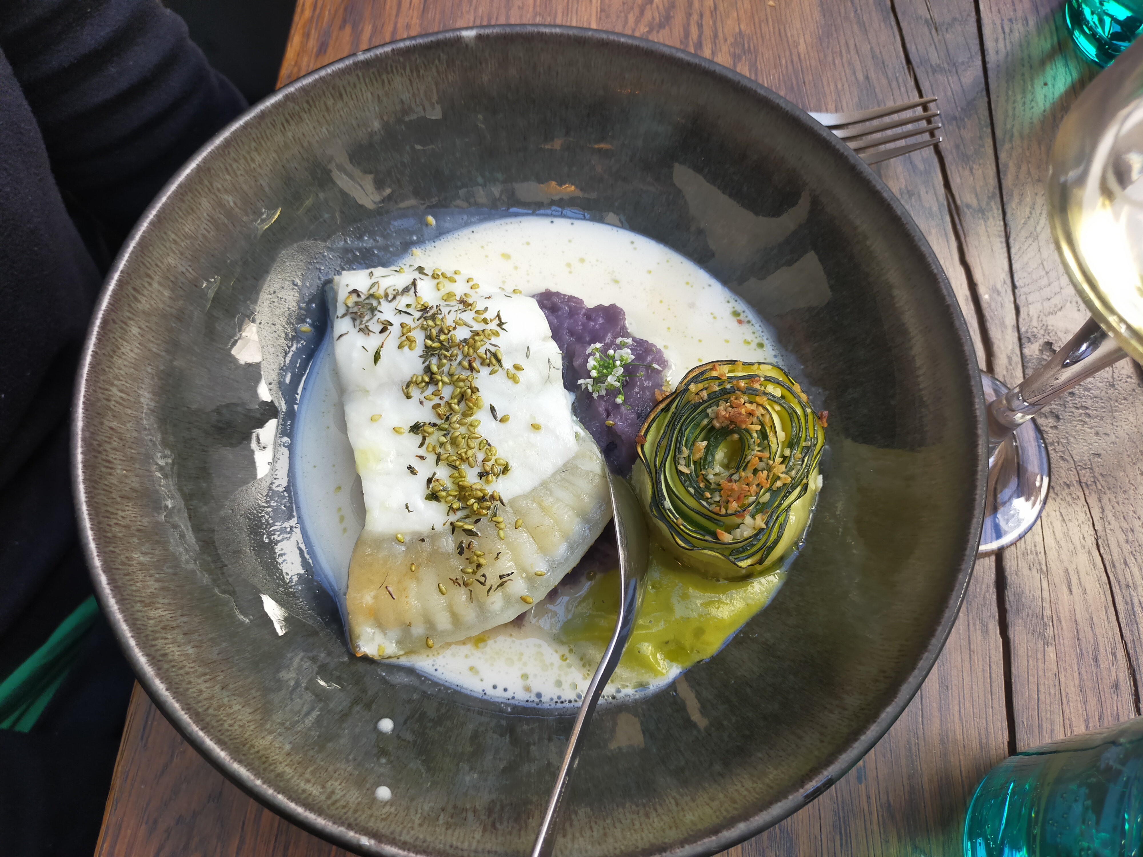 Très bonne découverte, mets pleins de saveur, poisson bien cuit, verveine Très agréable. Un tout petit bémol le pain n'a pas une croûte croustillante, mais cela ne concerne que mon goût personnel . Merci
