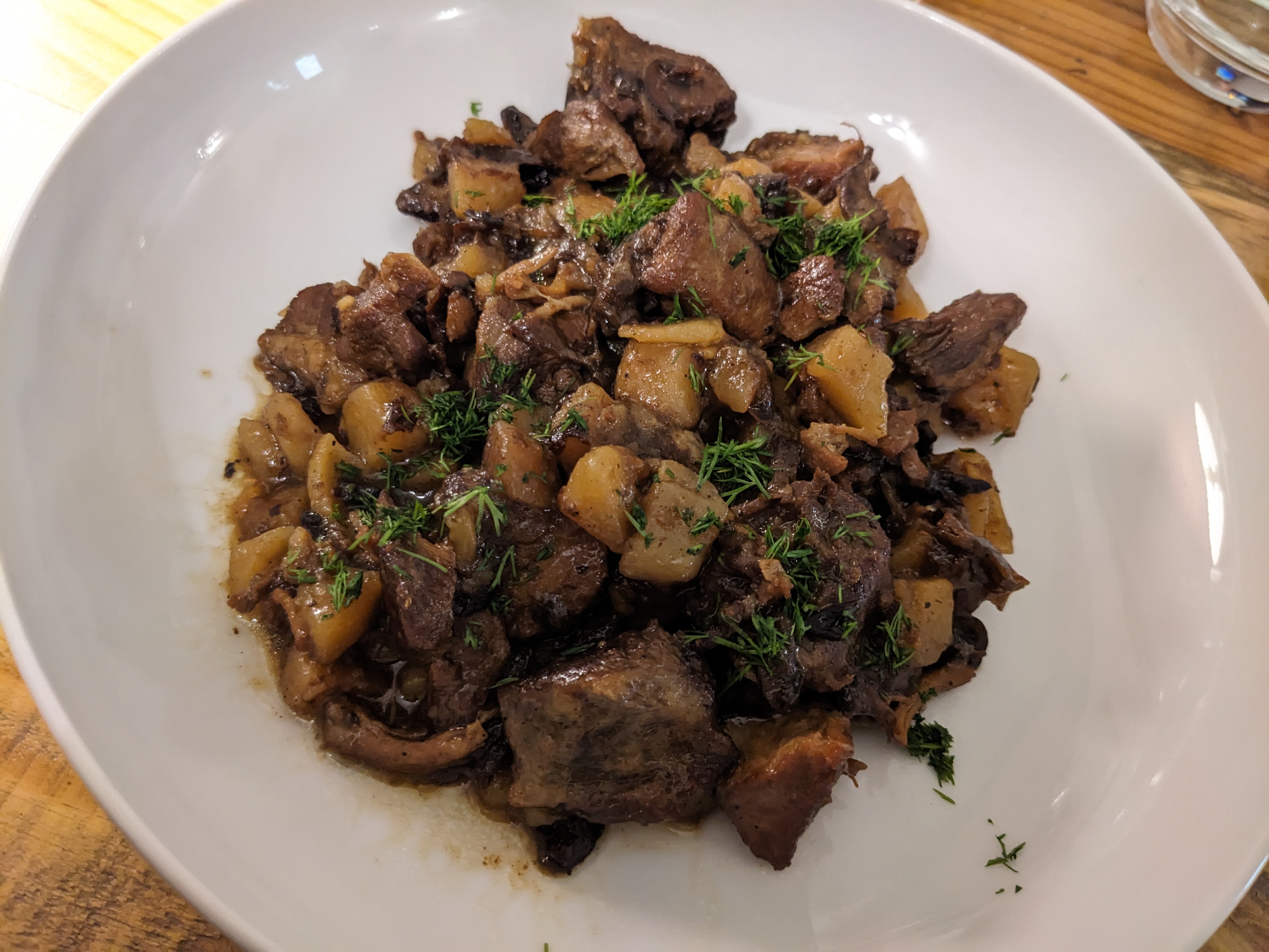 Agréablement surpris par cette nouvelle adresse, dans une ville qui semble presque morte par ailleurs. La Cheffe est d'origine Bielorusse et nous proposait : Soupe ukrainienne en entrée, plat ouzbek, dessert estonien. Tout était bon. Le vin rouge, un Irancy 2018 de Gabin et Félix Richoux était excellent ! Proche d'un Montus, dans l'appellation Madiran.