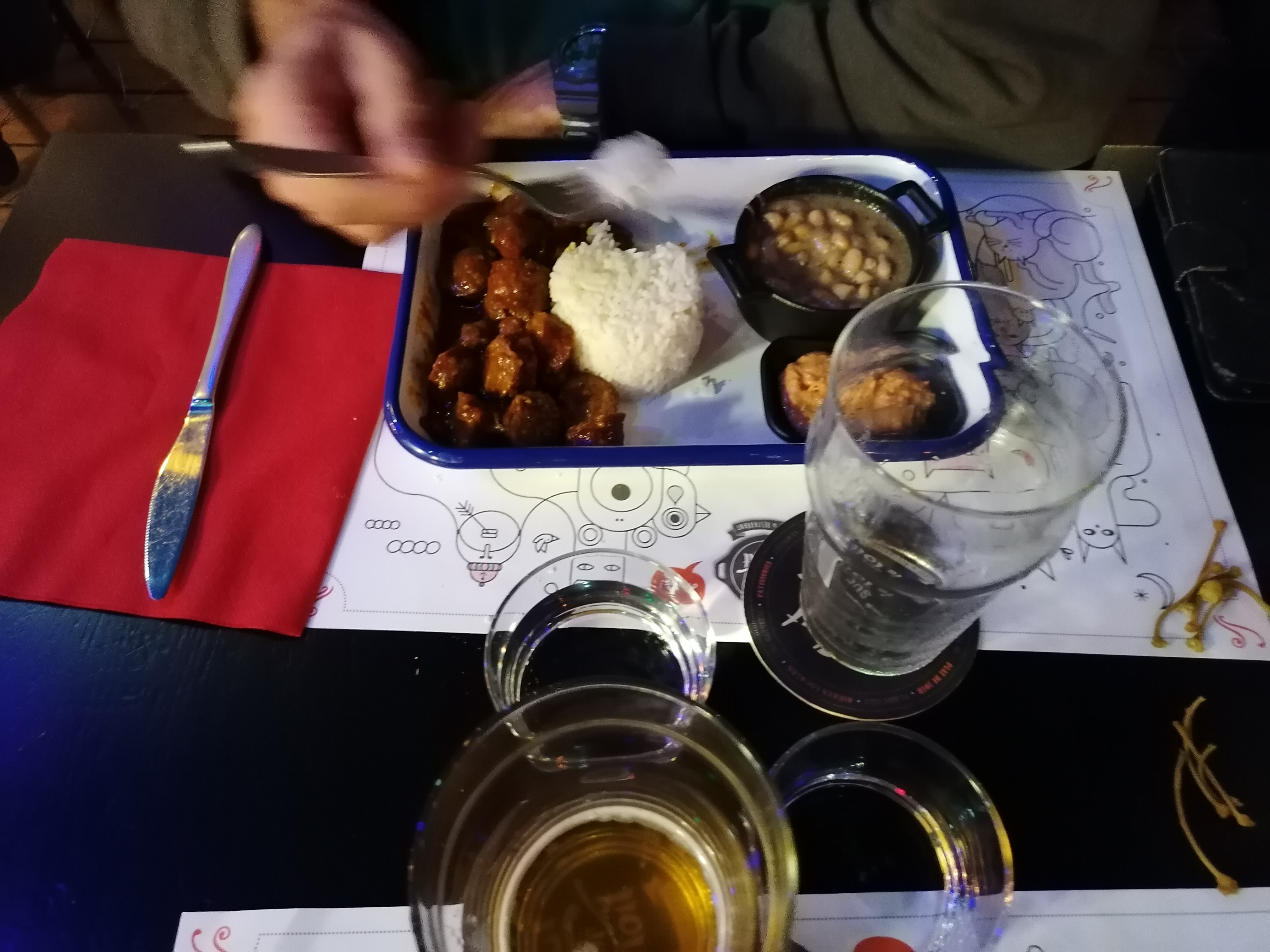 Très déçu. Arrivés à 21h, commande à 21h15, planche de charcuterie arrivant à 21h30. Plat à 22h30. Très long service. Très cher. 40 euros par personne pour 1 bière, 1/2 planche, 1 plat, 3 churros. Plat d'échine de porc sans plus. Légumes asiatiques avec frites (Très peu). Mélange se marriant pas très bien. Churros (7) servit dans un papier journal avec une petite sauce sans assiette, ni serviette. Signalant que le plat ne m'a pas plus, la serveuse me dit d'accord au lieu du pourquoi? Afin de penser à s'améliorer. Sinon bonne ambiance, plats faits maison mais beaucoup trop chers pour un service très long, peu copieux et au goût pas exceptionnel.