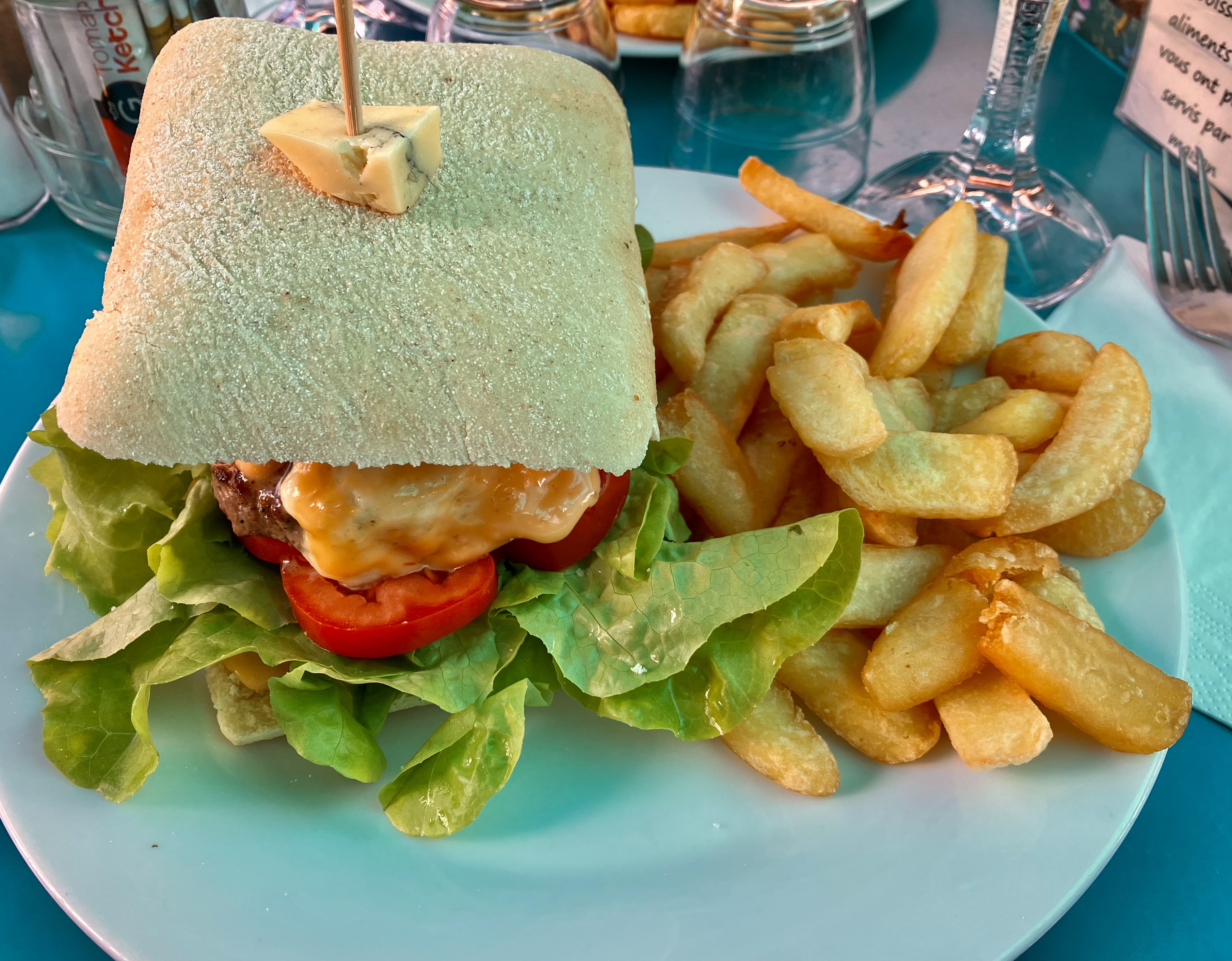 Avec mon compagnon nous y avons mangé samedi midi. C'était la première fois que nous nous y rendions . J'ai pris le burger franc comtois avec un tiramisu mon ami celui au canard et la tarte rhubarbe comme dessert . Mon avis : C'était vraiment très bon nous avons bien mangés tous les 2 sur le repas rien à dire . Mes conseils concernant la présentation des assiettes : - Moins de salade en effet nos assiette sont arrivées et nous avons été surpris par la quantité de salade surtout pour le burger au canard . - Des assiettes carrés seraient peut être plus pratique pour les burgers. - Dernier point peut être que vous pourriez servir les frites à part dans des petits paniers , c'était un peu galère quand je decoupais mon burger les frites se faisaient la malle lol . Voila à part ça c'était très bien pas trop d'attente la serveuse agréable . Bref j'y retournerais avec plaisir ^^