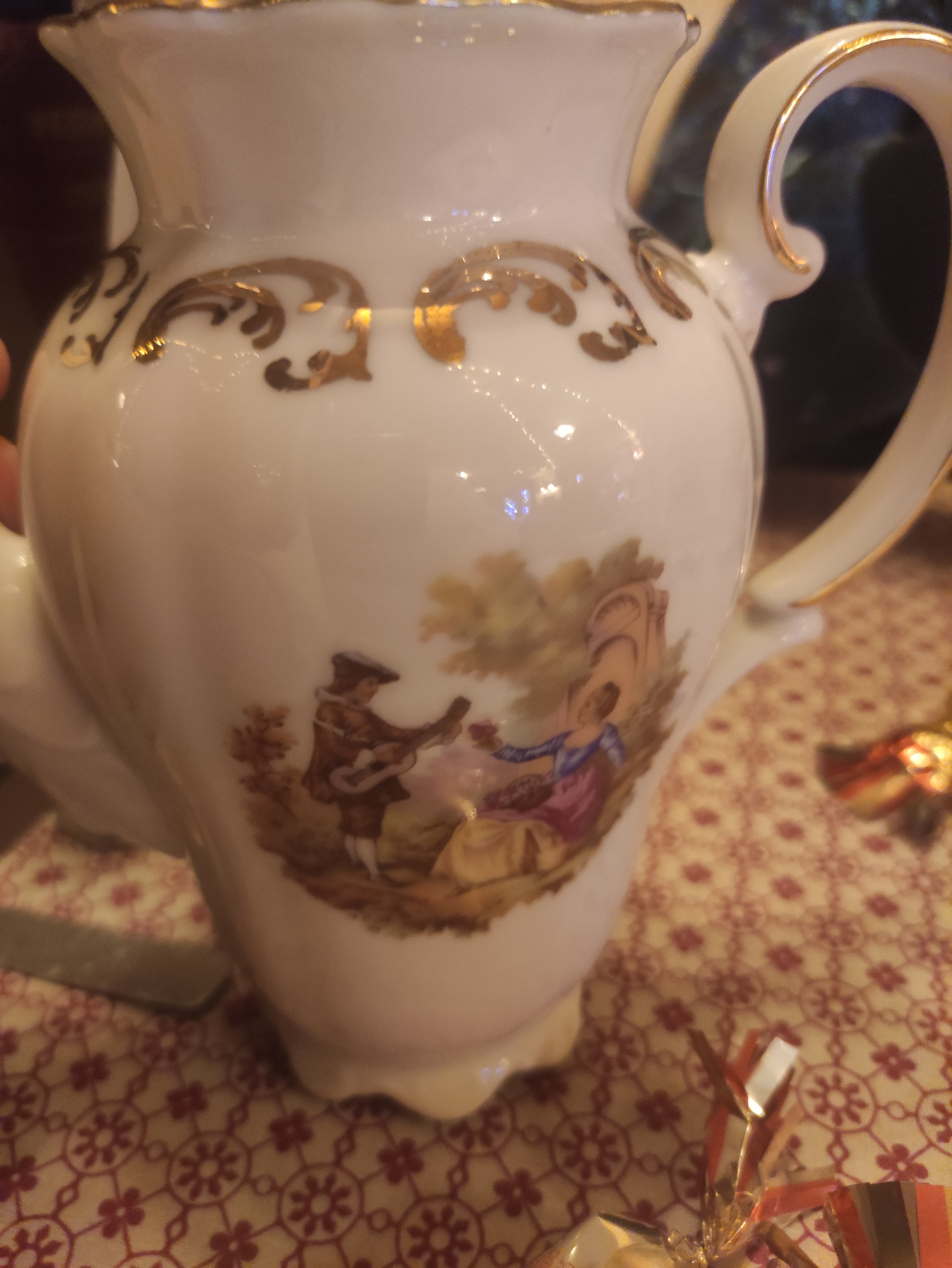 Délicieux petit déjeuner avec boissons chaudes et pâtisseries maison fabuleuses, dans une ambiance vieille France, y compris la vaisselle, très chaleureuse.