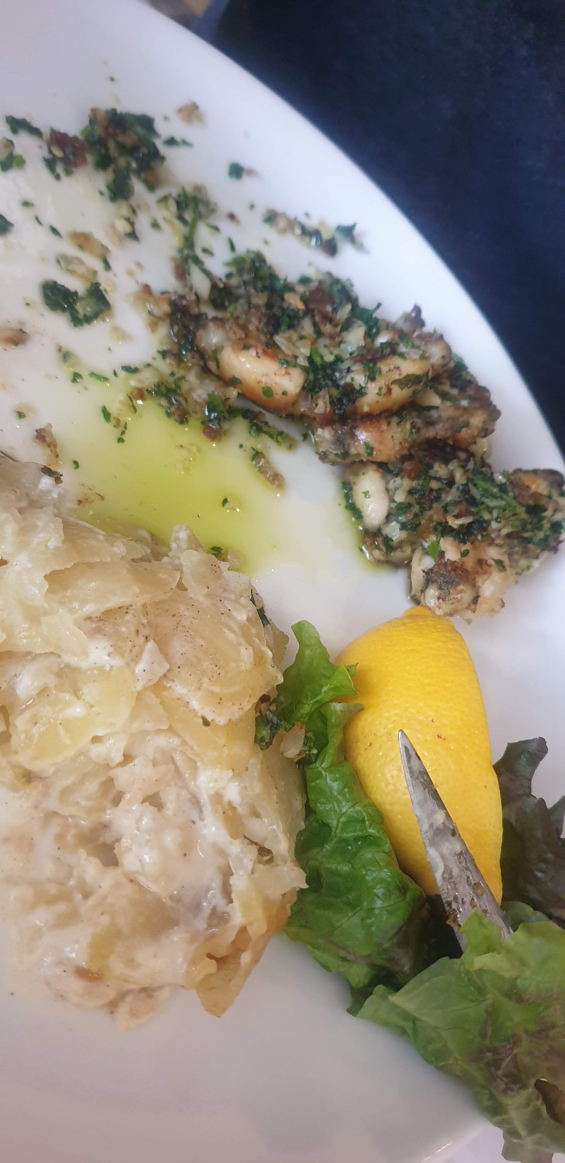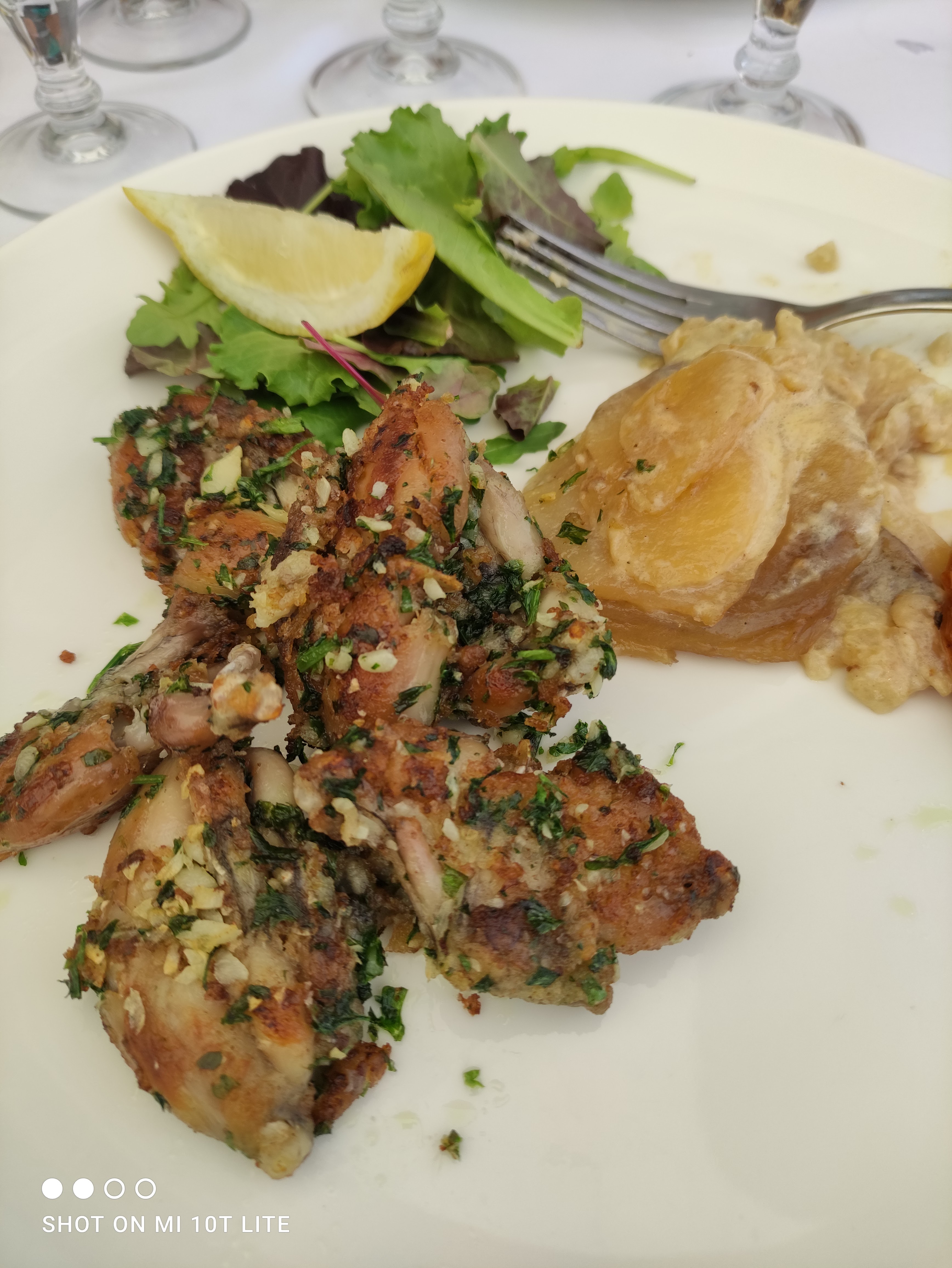 Grenouilles excelentes gratin également très copieus du coup on en a manger deux fois ,j'ai également hésité longtemps a prendre du vin chez vous et j'ai finalement craqué pour un croze hérmitage Je ne regrette pas du tout.Bon courrage.Merci