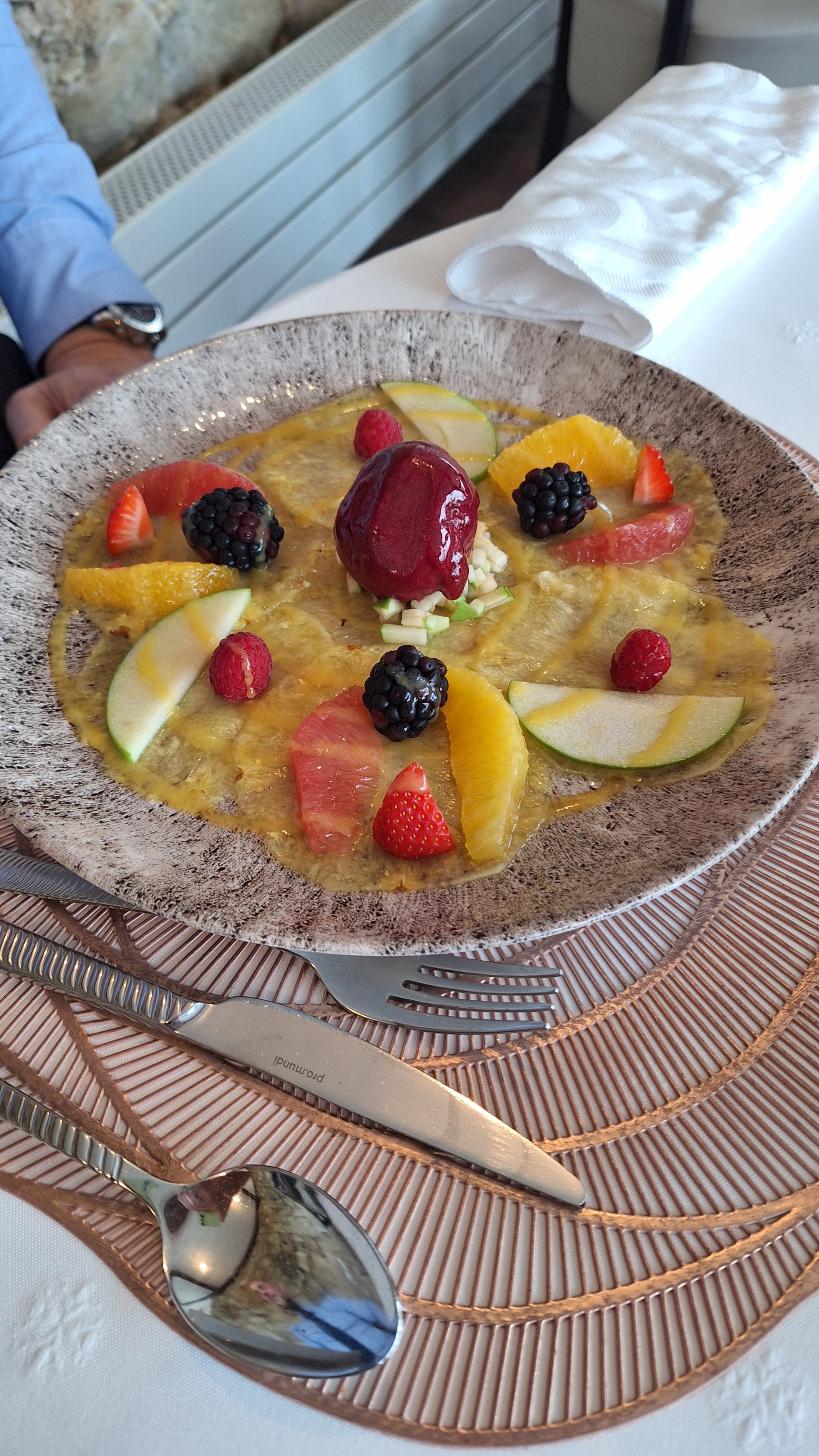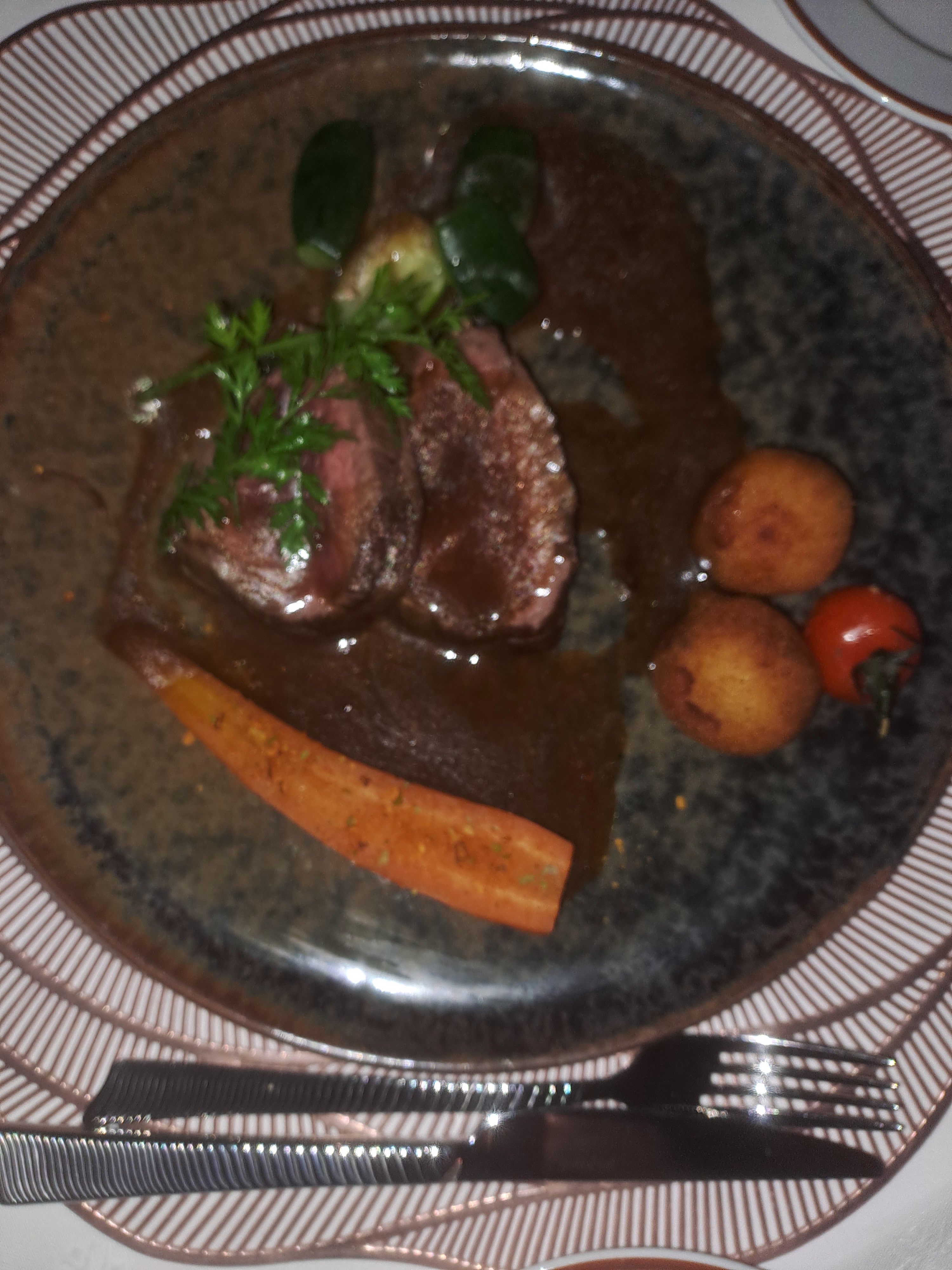 Fin et raffinée la cuisine manque un peu de quantité dans l’assiette, le cadre est par contre magnifique, cheminée, terrasse, belle vue et personnel au petit soin. Je recommande fortement 👌🏼