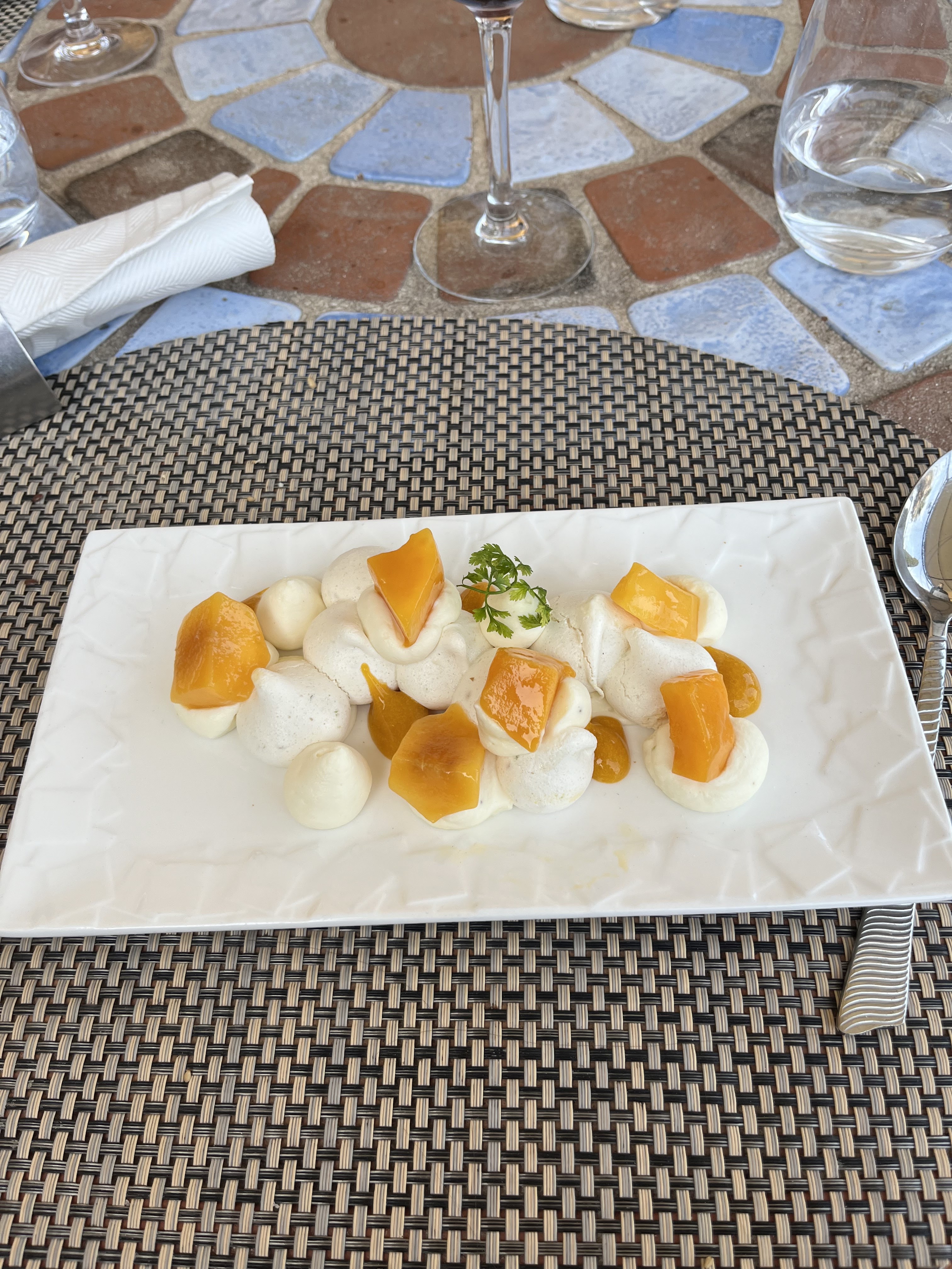 Plusieurs points dont un seul en demi teinte -les apéritifs ne sont pas du niveau des prestations du restaurant : simple produits, pas de coktails, les coktails jus de fruits sont juste des bouteilles toutes prêtes, le jus de tomate est servi non assaisonné par exemple. Ce restaurant mérite des apéritifs d'un plus haut niveau car justement le reste est excellent - le cadre magnifique : très calme, en terrasse donnant sur le village et sur la plaine. On a eu le droit à un levé de lune incroyable en face de la terrasse. - le service : irréprochable, explications des plats, disponibilité et aimabilité. A côté de nous une jeune fille était désespérée de ne pas avoir de burger : le chef lui en a fait un spécial et elle avait l'air ravie (du burger de compétition) - la carte : excellente. Des plats travaillés avec des produits locaux, des sauces bien relevées qui dynamisent le plat. Des légumes très bons. Vraiment excellent. Que ce soient les entrées, plats ou desserts. Bref une adresse à venir et revenir Merci a l'équipe et au chef pour ce moment mémorable