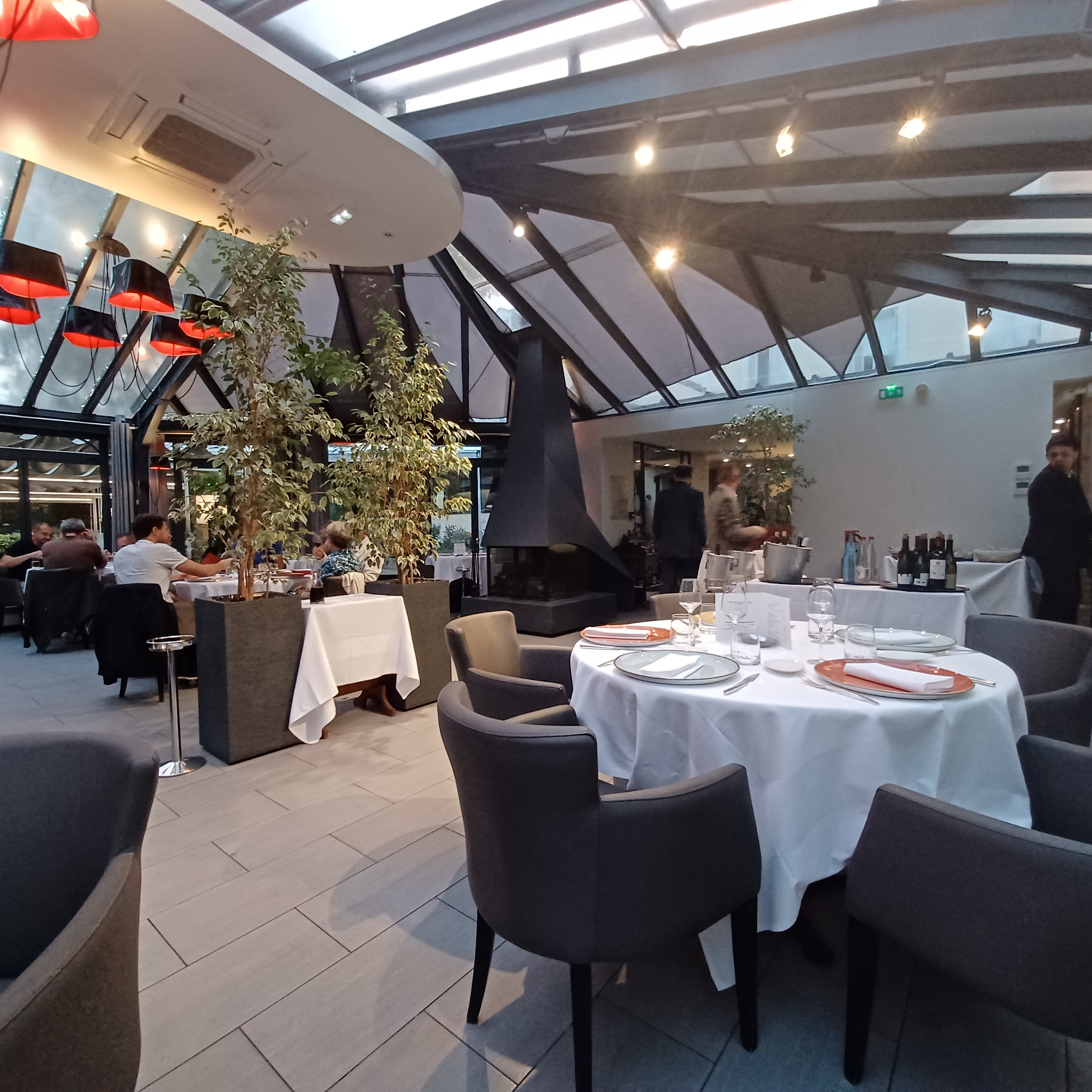 Excellent déjeuner sous la verrière, le service est très attentif, la cuisine au-delà des attentes pour un menu à seulement 48 euros. Carte des vins fournie. Nous y reviendrons avec plaisir